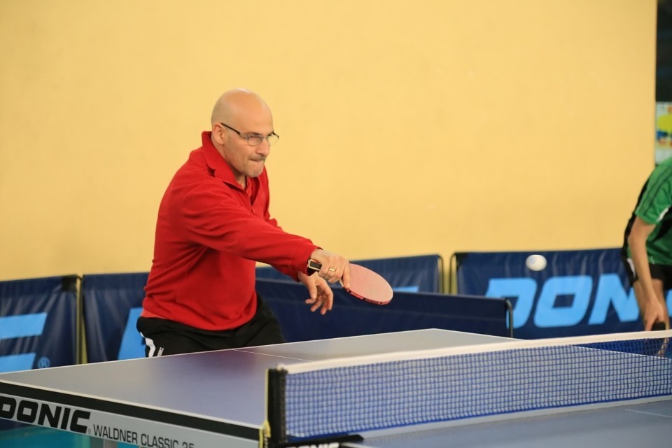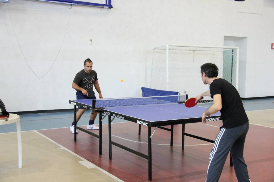 Si comincia con Marco Lai che al primo incontro affronta il puntinaro Luca Paganelli. Marco parte bene, sembra non soffrire il gioco passivo di Luca, e si aggiudica primo e secondo set (7,9). Scosso un po’ dalla panchina Luca entra più deciso nel terzo che si aggiudica a 6. Più continuo nel quarto che chiude a quattro e fatale nel quinto ancora a quattro. Passata la paura di subire un punto a sorpresa (Marco non e un amante dei puntini), al secondo incontro scendo in campo contro Stefano Pittau. La partita inizialmente è equilibrata, molti errori da ambo le parti e qualche bel punto, mi aggiudico il primo a 7 e perdo il secondo a 8. In panchina il neo coach Alberto (appena tesserato come tecnico di base), prova a farsi sentire: cosa ti metti a tirare che tanto sbagli! Non mi piace il consiglio, entro, attacco e porto il set facile a casa. Nel quarto si parte punto a punto, ho la meglio nel finale a 9 ed è due a zero per noi. Alberto Mattana con Angelo Serri danno vita ad una partita molto divertente che a lunghi tratti vede Alberto in difesa alta e Mauro a dover gestire un numero altissimo di schiacciate. La partita si prolunga al quinto dove fa poi la differenza la maggior esperienza del muraverese: finisce 3/2, con parziali 7,-8,7,-8,7. Ancora Paganelli nel quarto incontro con un quasi rinunciatario Stefano Pittau finisce 3/0 2,8,6. Alberto con Marco Lai nel quinto incontro porta più attenzione e chiude in tre set, 5,8,7; L’ultima partita mi vede impegnato con un buon Angelo Serri, finisce 3/1 per me ,13,-6,7,12”.