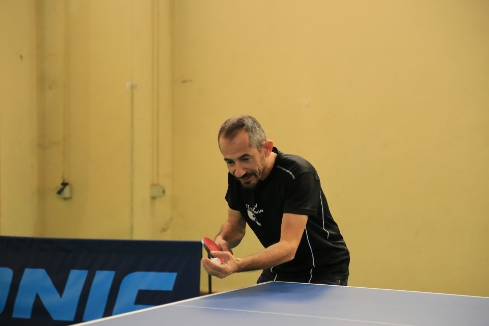 Prima contro il sottoscritto, si impone con una partita maiuscola, fatta tutta in pressione continua con aperture ed accelerazioni di ottima fattura (3-0). Nel successivo suo incontro, soffre inizialmente il gioco di Francesco Spatara nel primo set, riuscendo comunque a recuperare da uno svantaggio di 8 a 4. Vince comunque più o meno agevolmente per 3 a 1. Altro punto della Marcozzi di Mattia La Gaetana su Ubaldo Franceschi per 3 a 0.