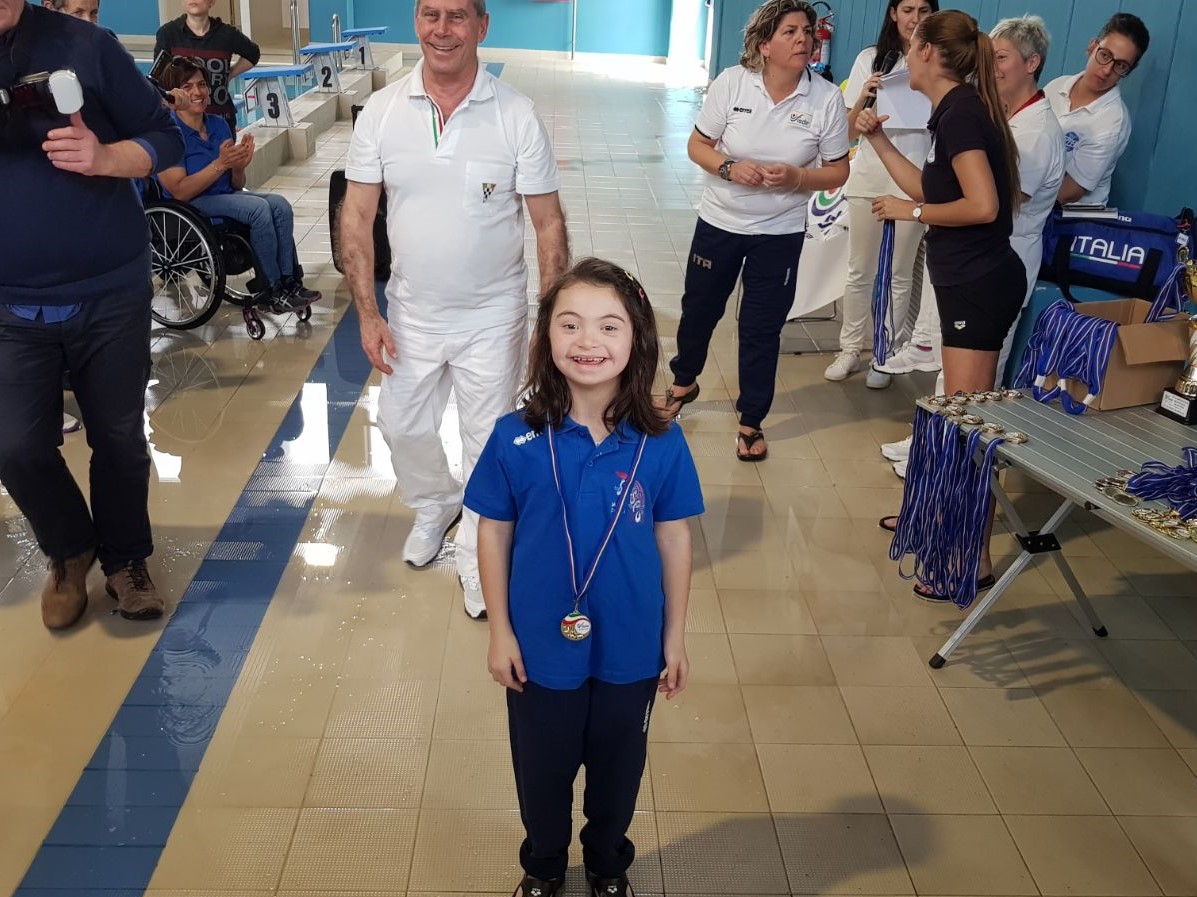 L’hanno subito adottata sostenendola con zuccherosissime attestazioni d’affetto. I nuotatori della Sa.Spo Cagliari tripudiano con la piccola esordiente Benedetta Strazzera che ai Campionati Regionali FISDIR (Federazione Italiana Sport Paralimpici degli Intellettivo Relazionali) di Oristano va subito al sodo con un oro e un bronzo nei 25 e 50 dorso.