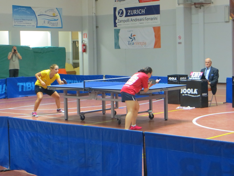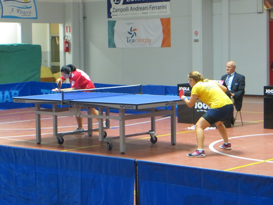 Il tatticismo diventa esasperato già da quando si imbrattano le carte della verità. Sia le giallo blu, sia lo staff lombardo le compilano senza assecondare le logiche più attese. Alla fine godono soprattutto le leader incontrastate delle due fazioni: Yuan Yuan e Niko Stefanova potranno facilmente portare due punti in cascina a testa. Ma le norbellissime appaiono favorite per via di quel match iniziale dove Marina Conciauro non perde con Cristina Semenza da sette incontri consecutivi. Con la variabile impazzita chiamata pallina le certezze vengono meno e la pongista palermitana, sebbene abbia conquistato gli stessi punti dell’avversaria, deve arrendersi ai vantaggi del quinto set. A parte ciò i pronostici vengono rispettati in pieno con Niko che non ha problemi prima con Semenza e poi con Maria Rita Pilloni. Mentre la cinese di stanza a Bagnolo San Vito riesce a recuperare uno svantaggio di 5/9 nei confronti della greca al primo set di gara 3, dopodiché scivola via senza intoppi. E poi incontra un piccolo ostacolo in gara 5 quando Marina la impegna nella seconda frazione che si conclude sul 16 a 14. Papadaki è estremamente concreta in gara 6 dove liquida Pilloni da Assemini con un netto 3 a 0 che vuol dire pareggio.