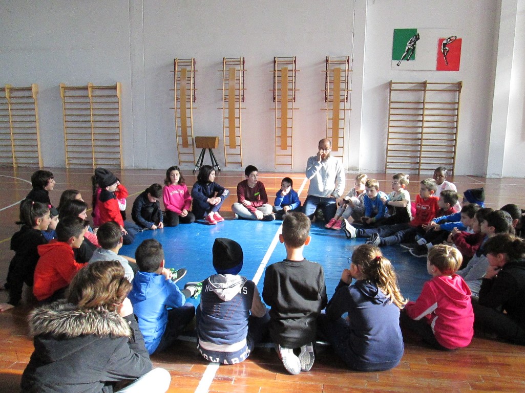 Al centro lo psicologo dello sport Manolo Cattari si relaziona con gli studenti