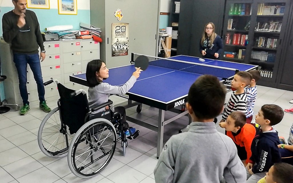 Un piccolo successo dei giovani discenti che contrariamente a ciò che è accaduto nelle altre quattro sedi del progetto caldeggiato dal Comitato Italiano Paralimpico Sardegna con la collaborazione della Regione Sardegna, sono più piccoli d’età. Questo perché già avviati verso un preciso percorso che sviluppa con particolare attenzione le tematiche sull’inclusione e le pari opportunità. E a contatto con gli atleti paralimpici intervenuti nel corso dei vari moduli hanno mostrato di avere un elevato grado di empatia. Ma gli stessi ospiti si sono divertiti un mondo: a partire dalla pongista lanuseina Federica Cuboni che ha animato la lezione relativa alla disabilità intellettiva. Sullo stesso argomento si sono impegnati a fondo i cestisti dell’AIPD Oristano, accompagnati dal tecnico e motivatore Mauro Dessì. E’ intervenuto, nel segmento dedicato alla disabilità fisica, anche Daniel Catalin Maris, giocatore di tennistavolo in carrozzina, compagno di scuderia nel TT Quartu di Federica.