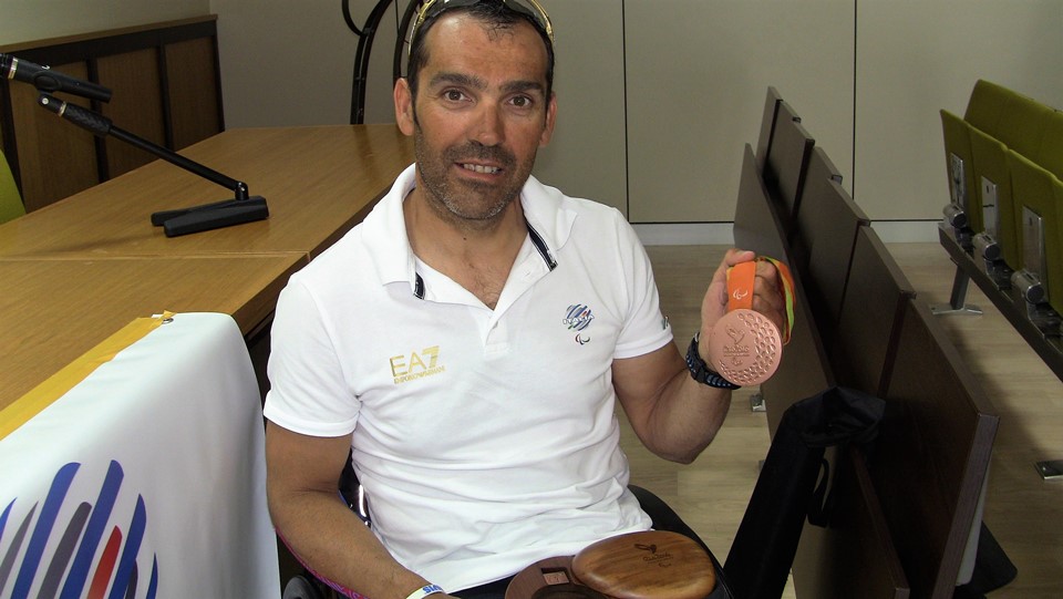 Gianni Achenza mostra il bronzo Paralimpico (Foto Ico Ribichesu)