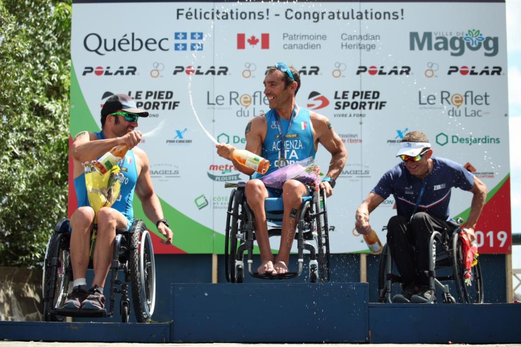 Leader nel circuito mondiale Paratriathlon World Cup a Magog in Canada. Giovanni Achenza da Oschiri, bronzo alle Paralimpiadi di Rio, dopo due anni si può beare di un successo importante che gli porta punti preziosi per la partecipazione a Tokio 2020. La bella performance fa seguito all’altro magnifico terzo posto registrato a Montreal due settimane prima. Il cartellone prevede altre otto gare in cui sono messi in palio i bonus di accesso alle prossime Paralimpiadi: gli esperti del settore incoraggiano l’atleta sardo facendogli notare che per chiudere qualsiasi discorso basterebbe un terzo posto al WPS, un primo al WCUP e un terzo al mondiale. E a proposito dell’importante competizione di fine agosto, prevista a Losanna, Giovanni è in partenza per Livigno dove intensificherà gli allenamenti e si ossigenerà al punto giusto. Ma ha un sogno nel cassetto da realizzare addirittura per le Paralimpiadi 2024: arrivare a Parigi con quattro paratriatleti sardi.