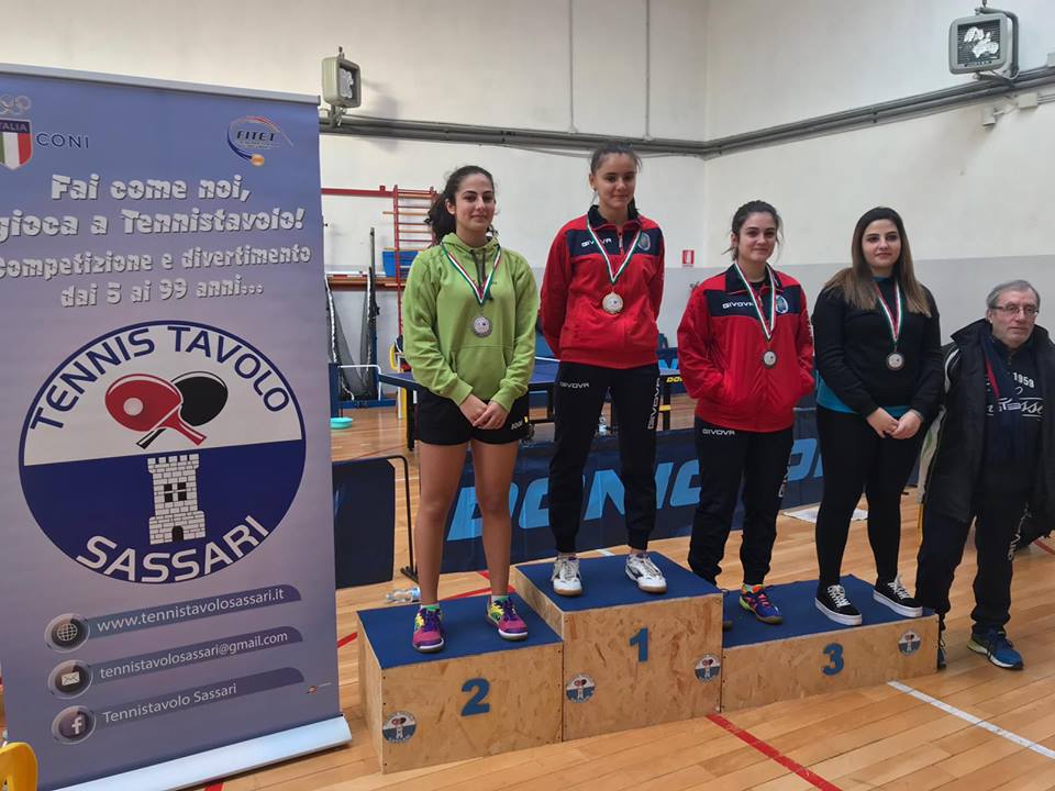 Podio Allievi femminile (Foto Tennistavolo Sassari)