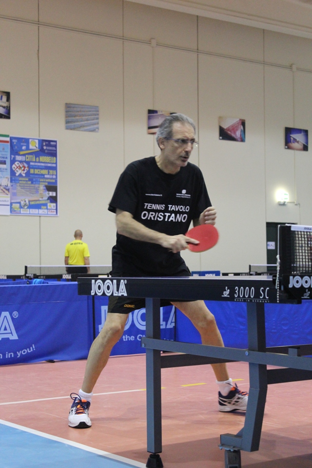 Colpo di freno del lanciatissimo Santa Tecla Nulvi ospite dell’Oristano Azzurri. “Lo scambio delle prime calde palline – espone Sebastiano Urrai – vede protagonisti i due tenori del top-spin: da una parte il temibile Roberto Caddeo e dall’altra il mio compagno Salvatore Coghe. Questo primo scontro vede spuntare il giovane nulvese al quinto set, alla fine d’una tiratissima partita di belli scambi e ricca di top. Nel secondo incontro esce vincente Luca Pilo in bonus sull’attacco di rovescio e prende la meglio sul taglio di solito più agguerrito di Emanuele Marras. Sul due a zero si impossessano del tavolo “assai caldo” il sardo-‘svizzerato’ Urrai, opposto a Conconi. Dopo batti-becco e batti e ribatti di scambi a freno teso, vede la partita rilanciata da Sebastiano al quinto set che ritrova un insperato ‘tonus’ in epilogo. Risanato dall’esito favorevole della terza partita per il TT Oristano, Tore Coghe la spunta su Pilo facendo prevalere qualche schiacciata e diversi top spin. A conto pareggiato più di due generazioni separano i prossimi antagonisti e un Sebastiano un po’ spento e in mancanza di “cioccolatino vitaminato” vede prevalere il giovane Roberto Caddeo, più in palla. Partita decisiva dunque tra Manu Marras che ha saputo prevalere col taglio al tavolo e sempre scontata pazienza su uno Stefano Conconi sempre ostico, portando gli Oristanesi sul pareggio non del tutto scontato. Da notare che i pensionati della palestra di Torrangius hanno tolto punti alle prime della classe e che come già rilevato, nulla è scontato in questo campionato dove tutte la partite “vanno giocate”. Inoltre è bello puntualizzare che malgrado un campionato assai teso come quest’anno, il fair-play con il giusto agonismo, non impedisce qualche bella risata “sardonica” facendo distendere i “muscoli affilati” all’interno di palestre e palestrine sempre più umide e fredde. Augurios ciao a tutti…et Bonnes fêtes de Noël”.