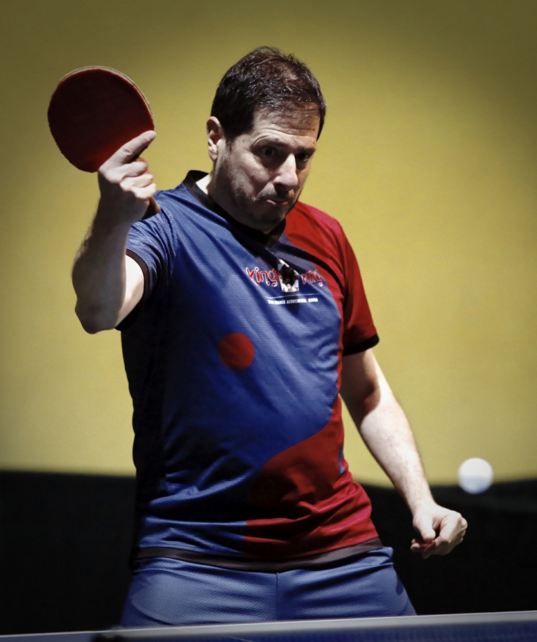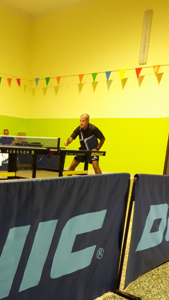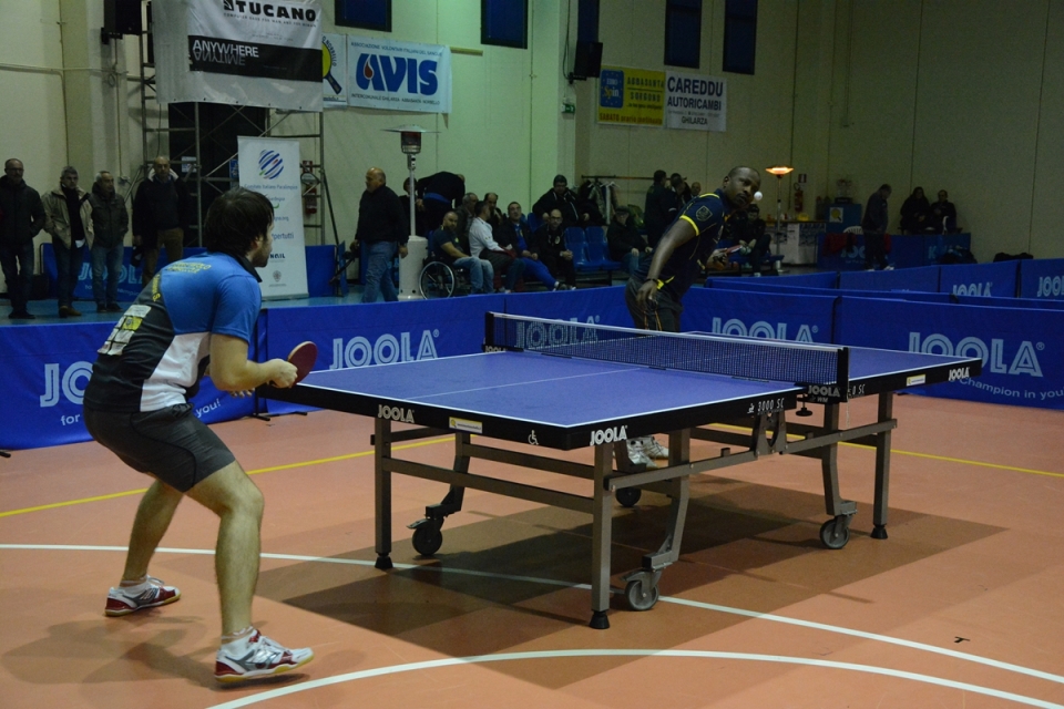 Il Santa Tecla Nulvi è contemporaneamente penultimo e secondo in classifica. Stavolta si deve arrendere al King Pong Di Cesare in cui milita il cordialissimo Antonio Di Silvio: “In un girone dove l’equilibrio la fa da padrone, ad una giornata dal termine del girone d’andata, ben quattro squadre sono al comando. Con sei punti, e tre seguono con quattro. Con un solo posto per la retrocessione, in virtù del ritiro della AS ROMA prima dell’inizio del campionato, ancora non si capisce bene chi lotti per promozione o retrocessione. Nulvi arriva a Roma sicuramente con i favori del pronostico: lo scorso anno ingaggiò Gian Carlo Carta un po’ troppo tardi e fallì la promozione per un soffio. Quest’anno non solo lo schiera fin dall’inizio, ma gli affianca un ottimo allenatore/giocatore quale Erich Schuster. La King Pong, che ha ben altri problemi, con due giocatori della propria formazione che passano l’estate in ospedale, corre ai ripari in ottobre, usufruendo di Troilo tesserato King Pong, non impegnato con nessun’altra squadra, perché ora più dedito a far crescere i ragazzi della società. Sarà sicuramente lui il protagonista dell’incontro con i suoi 3 punti. Andando per ordine, il primo incontro tra Marcolini e Carta si conclude a favore di quest’ultimo, quindi primo punto per i sardi. La seconda partita, quella tra Basiru Taiwo Oladimeji e Di Silvio è molto tirata: la situazione dei precedenti testa a testa è in parità, una vittoria per parte, lo scorso anno. Il nigeriano attacca con molta potenza e il giocatore della King Pong, con i suoi due puntini corti, contrasta e contrattacca. Avrà la meglio il rappresentante del Nulvi, per 3 a 2, dopo quaranta minuti di partita: si va sul 2 a 0. L’incontro tra Francesco Ara, il rampollo del S.Tecla, e Troilo, è più veloce della luce, 3 a 0 per quest’ultimo che accorcia le distanze: 2 a 1. Nulla può Marcolini contro il forte nigeriano, riesce anche a togliergli un set, ma il punto è per i sardi che allungano, 3 a 1.