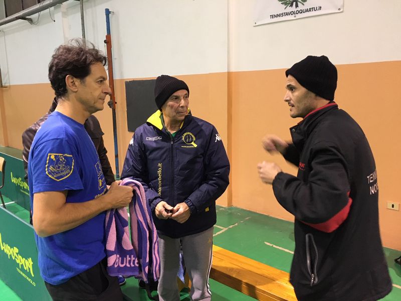 Il Libertas Sassari A impatta con il team delle Speranze Olbia. “Sono riuscito a vincere le mie prime due partite importanti – esclama un felicissimo Francesco Denegri – dopo una sfida molto equilibrata perché quasi tutte le partite sono finite col minimo scarto. Gigi Scudino le ha perse tutte e due perché non stava tanto bene. Invece Salvatore Biosa ha vinto solo la seconda 3-1 con Falconi. Io ho battuto Falconi e Marco Dessì entrambe al quinto set. Finalmente riesco a vedere i frutti del mio lavoro, perché prima potevo allenarmi quanto volevo, ma la differenza di esperienza e di gioco era talmente ampia che non mi permetteva di giocarmela alla pari con nessuno. Invece ora, bene o male, in D2 me la gioco più o meno con tutti e questo mi ripaga di tutti i sacrifici. Penso che a volte non basti saper giocare, anche la testa è importantissima in questo sport e piano, piano sto capendo delle cose nuove che mi fanno giocare sempre meglio”.