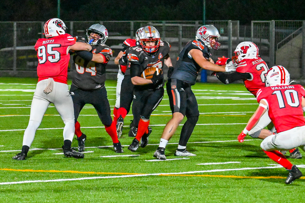 “La linea offensiva ha dominato – grida felice – è stato bello da vedere. Ci hanno annullato diversi td, al di là di tutto significa che stiamo migliorando. Inoltre non ci sono stati fumble, il che è fantastico. I college americani adorerebbero questa statistica. Sono felice per gli atleti, sono come miei figli. Adesso rifiatiamo un po’ ma non vedo l’ora di rimetterci sotto per affrontare nel migliore dei modi il viaggio a Lugano. So già dove concentrare gli sforzi: lavoreremo sulla leva del placcaggio in difesa”.