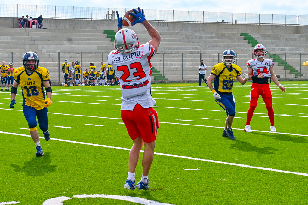 Non basta essere atletici e performanti, ci sono anche gli schemi che possono variare in continuazione e la bravura di un attaccante si vede nelle mosse corali che assecondano le richieste da bordo campo. L’offensive coordinator Aldo Palmas ha capito che non sta predicando nel deserto e il sacco di Segrate ne è una dimostrazione.
