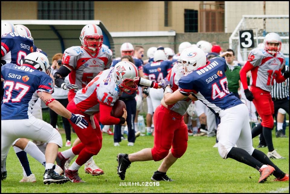 Troppe palle perse dai ricevitori e quattro turnover hanno dato palla all’offense dei Blue Storms in buona posizione di campo. In più di una occasione la difesa ci ha messo una pezza ma altre volte ci hanno sopraffatto.