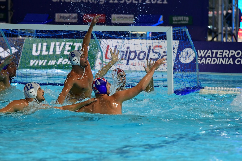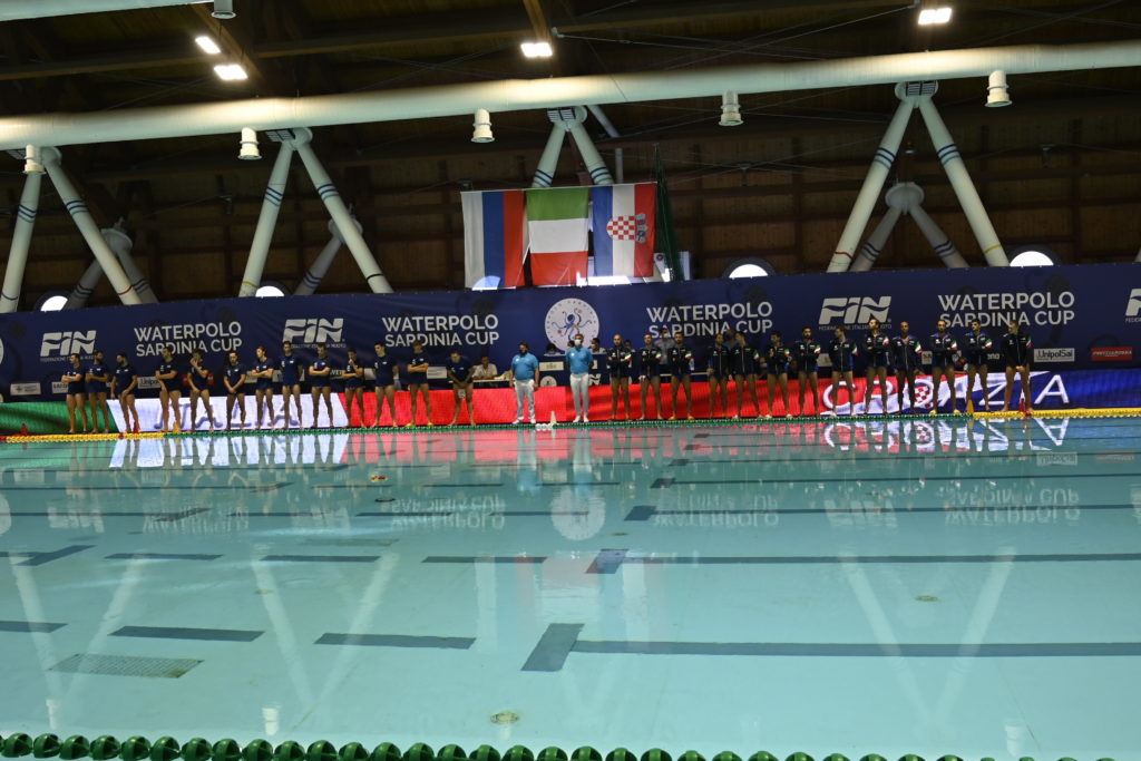 Fanno spettacolo pure gli errori e le ingenuità commesse da due compagini dal forte blasone ma che sguazzano in una fase ancora preparatoria prima dell’appuntamento più atteso, quello di Tokio. La Croazia vince, ma pur convincendo solo in parte il suo allenatore, davanti a tanti tricolori agitati da giovani aficionados festanti, sfila a bordo piscina per ricevere la Sardinia Cup in quanto è riuscita ad imporsi sia con l’Italia (15-12), sia con la Russia (14-5)) il giorno prima.