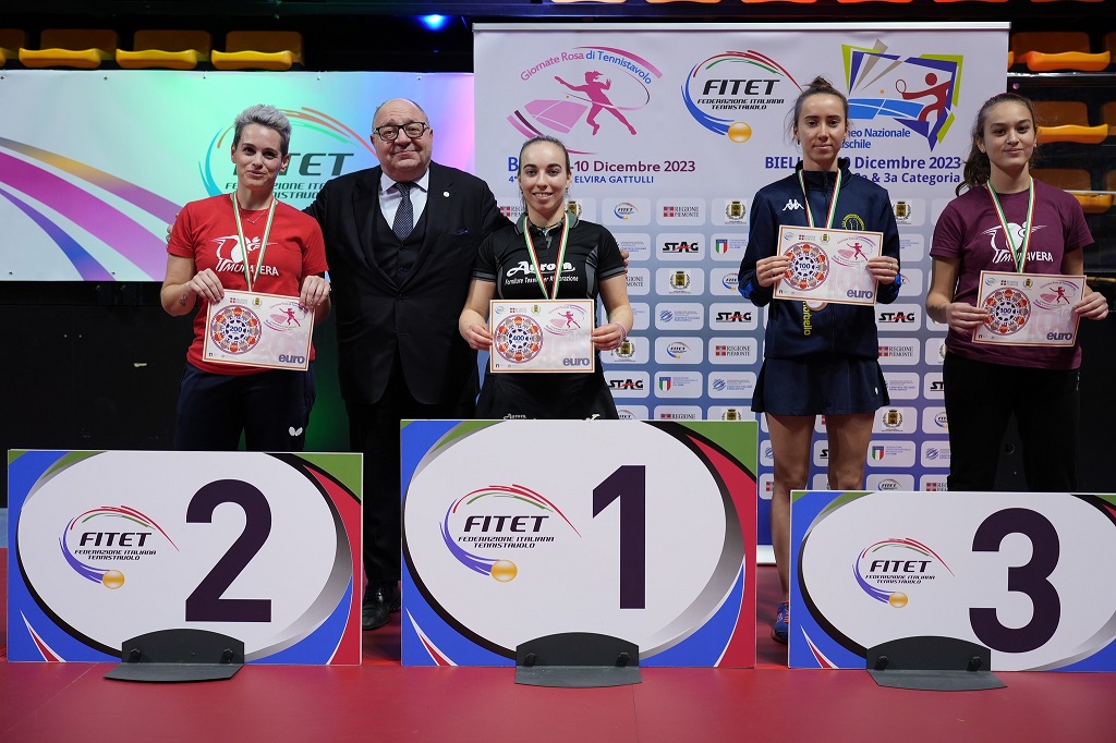 La scorsa settimana protagoniste Le Giornate Rosa – 4° Memorial Elvira Gattulli, riservate alle donne. E la Sardegna ha coperto l’intero podio riservato alla seconda categoria. Il Quattro Mori Cagliari accompagna la magiostrina Arianna Barani sul gradino più alto. Batte in finale la sua concittadina Giulia Cavalli (Muravera TT). Della sua stessa scuderia Miriam Carnovale che occupa quello più basso assieme alla pongista russa del Tennistavolo Norbello Sonya Ivanova.