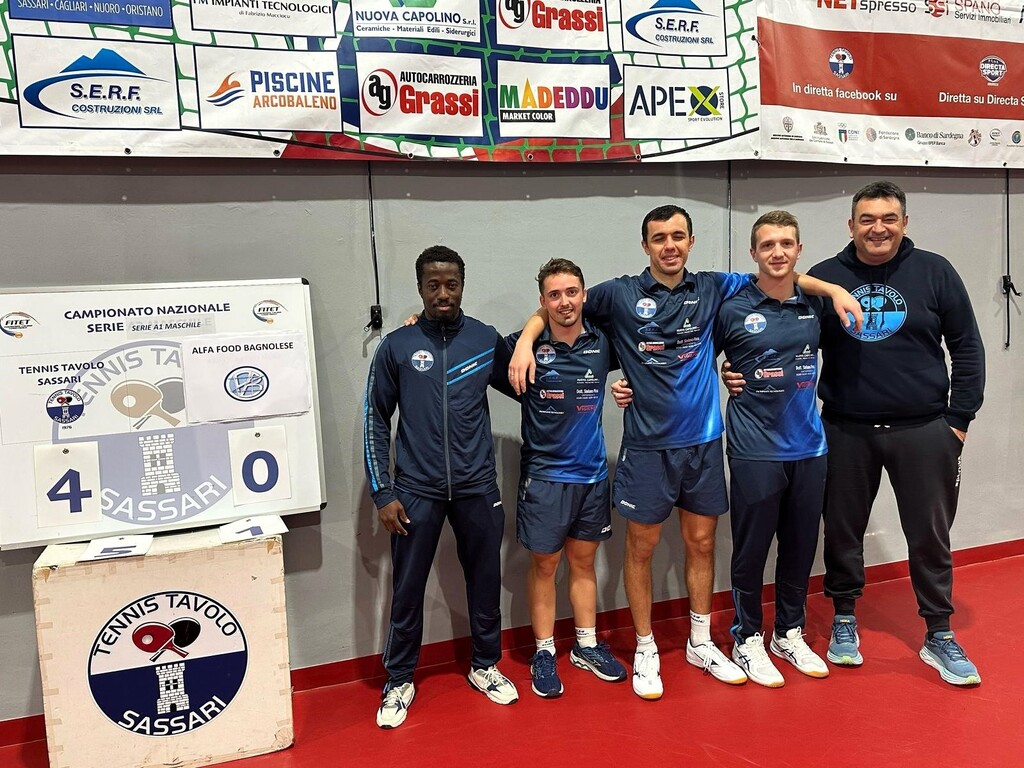 Matricola solo nell’aspetto dirigenziale, ma quanto al suo organico il Tennistavolo Sassari ce l’ha assai competitivo con individualità che hanno lasciato il segno anche in passato. Sotto questo aspetto non deve sorprendere il risultato acquisito: quando mancano due giornate al termine della regular season della A1 maschile il club turritano raggiunge la Marcozzi al secondo posto e stacca il pass per i play off scudetto dopo aver superato con astuzia ed esperienza una Bagnolese che probabilmente ne rimarrà fuori. Non capita tutti i giorni di assistere ad un 4-0 con singole sfide terminate tutte al quinto set. Freddezza e calore della tifoseria hanno senza indubbio dato quel quid in più a Sadi Ismailov, autore del secondo e terzo punto e ai due italiani Alessandro Baciocchi e Andrea Puppo, particolarmente ispirati contro una formazione lombarda ugualmente attrezzata.