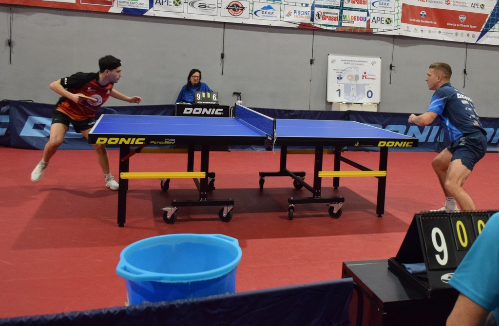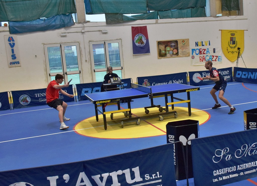 Quarta posizione definitiva per il Tennistavolo Sassari che ospita e batte il Muravera B con le doppie realizzazioni di Tonino Pinna e del lanuseino Elia Licciardi (suo il punto conclusivo contro il concittadino, compagno di allenamenti e amico Emanuele Cuboni). Di Alberto Ticca la vittoria che ha aperto la contesa. Sul fronte sarrabese Gioele Melis vince due volte, Cuboni una sola.