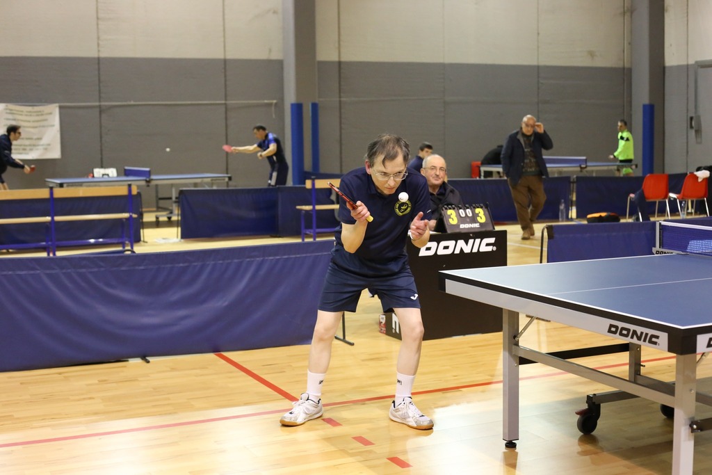 Gabriele Aresu (La Saetta Verde): Iniziamo contro la Muraverese: io, Sara Floris, Franco Esposito contro Gianluca Mattana, Alberto Piras e Marco Dessì. Incrocio Mattana, vinco io con molta fatica. Floris gioca un notevole tennistavolo ma soccombe a Piras. Franco si misura contro Dessì che fa vedere, pur essendo molto giovane, una buona tecnica d’attacco su i puntini. Franco porta comunque a casa la partita. Poi affronto Piras, vinco abbastanza tranquillo perché lui si è trovato palesemente in difficoltà con il mio tipo di gioco. L’ultima partita, tra Franco e Mattana, la vince il mio compagno per il definitivo 4-1. Di seguito ci attende l’Olbia. Antonio Trubbas mi mette in difficoltà perché ha un buon gioco d’effetto e perdo la partita. Chiara Cottiglia cede per inesperienza a Pier Paolo Melis pur avendo giocato un buon tennistavolo. Franco vince la sua partita con Stefano Corda grazie alla sua esperienza e alla sua tecnica. Con molta difficoltà faccio mia la mia partita con Melis. Franco, anche se con un po’ di fatica, mi vendica con Trubbas. Floris continua ad esprimersi nel miglior modo possibile ma Corda ha la meglio. L’incontro termina tre pari. Con l’Iglesias finisce in pareggio, due punti miei e uno di Franco avendo giocato una sola partita. Un pareggio che consolida il nostro passaggio in D1. Invece ci batte la Marcozzi Boss: io perdo con Rasulo ma in precedenza batto Puleo. Le ragazze si arrendono ai loro rispettivi avversari, nonostante abbiano dato prova di una buona tecnica. Riguardo l’intero concentramento, era da tantissimi anni che non facevo questo genere di gare; è stato veramente faticoso per un giocatore della mia età ma anche per le ragazze. Comunque mi ha fatto piacere incontrare vecchie conoscenze e non solo, con cui ho disputato tante belle partite combattute”.