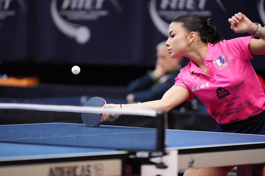 In attesa di tutte le testimonianze vincenti che si paleseranno presumibilmente nelle prossime cronache pongistiche, raccogliamo subito quella di Miriam Carnovale, reduce dal doppio argenteo con Sofia Minurri: “Sicuramente ho partecipato ad una competizione non facile, sino alla finale sono state tutte gare difficili, già dai quarti abbiamo rischiato di andare sotto, ma siamo state brave ad uscire dalle difficoltà. Non sono girate un po’ di cose, il gioco aggressivo che ci ha pagato in un torneo internazionale disputato insieme, oggi non è andato poi così bene. La semifinale è stata tosta contro avversarie atipiche come una che gioca a penna e una difesa, ma siamo riusciti a gestire bene i momenti e a trovare il gioco giusto a livello tattico che ci ha consentito di portare la vittoria a casa. Purtroppo la finale l’abbiamo interpretata male a livello tattico e questo poi ci ha pesato anche a livello morale. Abbiamo perso i primi due set tirati; se magari fossimo andati uno sopra o anche 1-1 sarebbe stata una partita diversa e staremmo parlando di un risultato diverso. Con i se e con i ma non si fa niente, però sono state brave le avversarie che hanno giocato bene, non sbagliando niente, chiudendoci in un gioco che ci dà fastidio, hanno vinto meritatamente”.