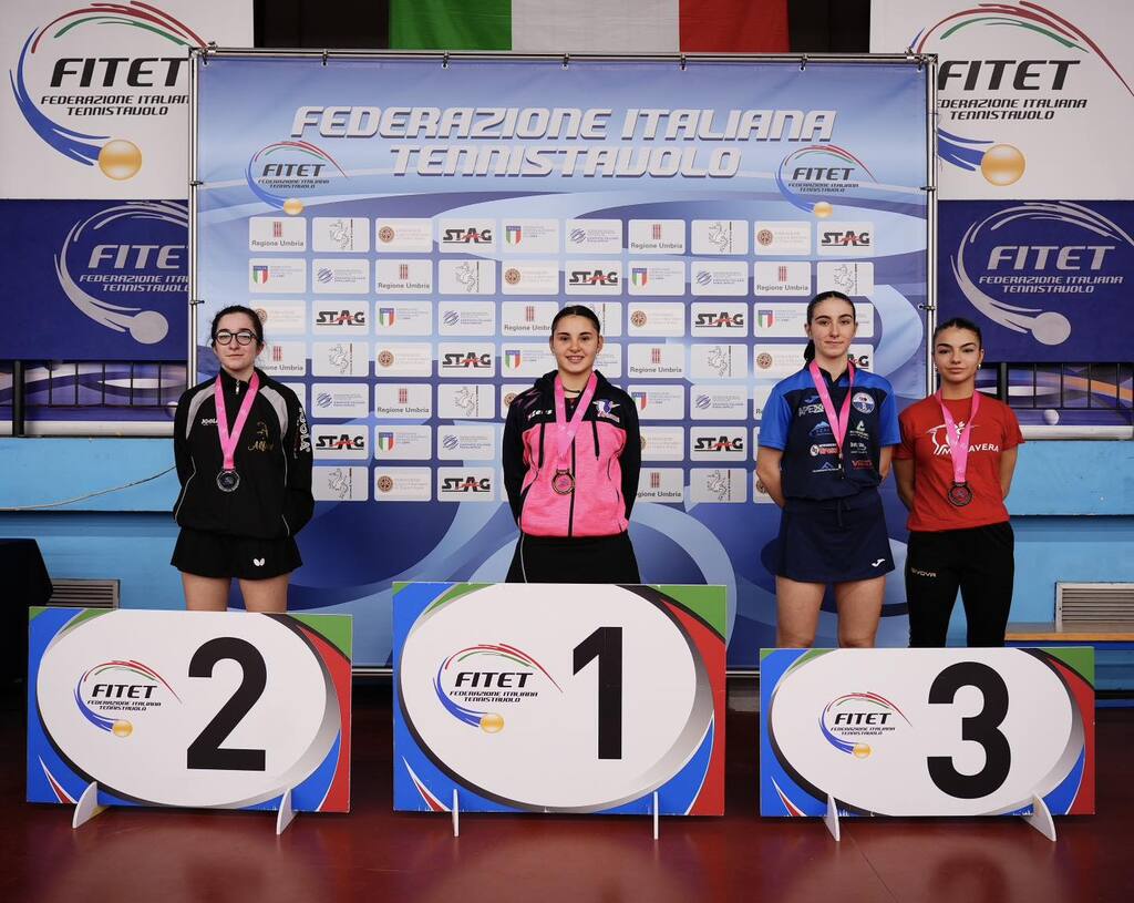 Passa appena un giorno dall’inizio del 2° torneo nazionale giovanile della stagione, in svolgimento a Terni fino a domenica, e le società sarde già si esaltano. Nell’under 21 femminile e maschile Sofia Minurri (Muravera TT) e Andrea Puppo (Tennistavolo Sassari), salgono sul gradino più alto del podio al Palatennistavolo De Santis. Ma non finisce qui: i due gradini del podio riservati alla terza posizione sono occupati da Francesca Seu (Muravera TT) e Laura Alba Pinna (Tennistavolo Sassari) mentre il finalista battuto dal pongista ligure è Costantino Cappuccio del Santa Tecla Nulvi. Il giorno dopo altro terzo posto per la società sarrabese presieduta da Luciano Saiu conseguito nell’under 15 femminile grazie a Martina Tirrito