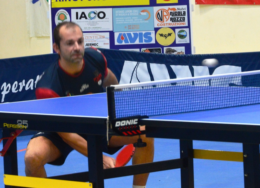 Sorprese anche nel girone D con la capolista Marcozzi Red che cede nello scontro di cartello al Decimomannu che si riporta sotto, ad un solo punto di distacco. Il commento di Paolo Soraggi: “Ai campi di via Crespellani ci presentiamo al completo per incontrare i padroni di casa. La sfida inizia con Esposito-Soraggi, non riesco a contrastare soprattutto i suoi servizi e Riccardo vince per 3-0. Nel secondo incontro Belmonte-Davide Mameli, Michael non ha problemi a portare a casa il risultato. Il match Sirigu-Pinna è più interessante, da una parte Efisio che ancora non aveva metabolizzato maialetto e cannonau e dall’altra Luca che, dopo essersi allenato tutta la settimana contro la puntinata del compagno Antonello Mura, sfodera calma e lucidità e vince per 3-1. Siamo venuti con l’intenzione di dimostrare che, in questo girone, non siamo secondi a nessuno ma ci ritroviamo sotto 2-1. Il quarto incontro, che vede di fronte Esposito-Belmonte, è stato il più avvincente sia sotto il profilo tecnico, sia emotivo; Michael, ascoltando anche i consigli dalla panchina, riesce a vincere al quinto set: bravo! Sul 2-2 entro in campo contro Luca, gioco accorto, attacco con top spin carichi ma non troppo veloci per evitare i suoi blocchi insidiosi e vinco per 3-0. Ultimo incontro: Davide vs Efisio ET Efisio vs maialetto ET alcol-deidrogenasi vs cannonau ET consigli di Salvatore = 4-2 per noi.