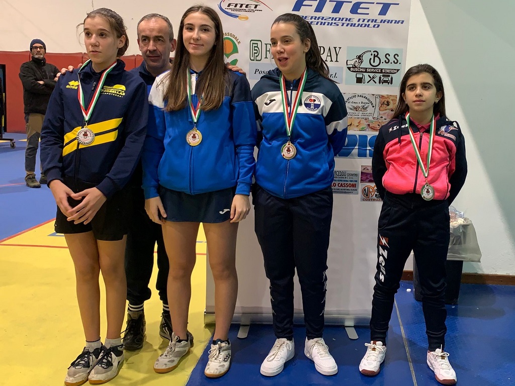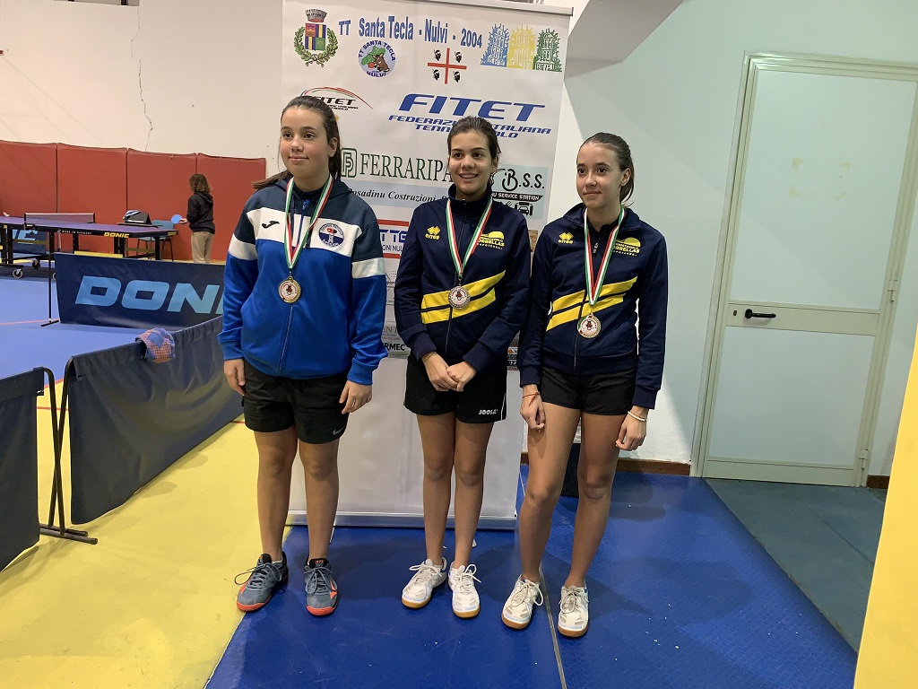 Quindici gare contrassegnano il girone unico nel quale battagliano sei piccole pongiste. La vincitrice Claudia Melis (Muravera TT) fa en plein: in quattro sfide non concede neanche un set. L’unica che le dà seriamente filo da torcere è l’autoctona Maele Pisano (Santa Tecla Nulvi) impegnandola fino al quinto parziale, superato comunque in assoluta tranquillità. Un’altra teclina, Arianna Rassu si appropria del terzo posto, davanti a Francesca Giglio (Muravera TT), Emma Useli (Muravera TT), Nunzia Sibiriu (TT Guspini).