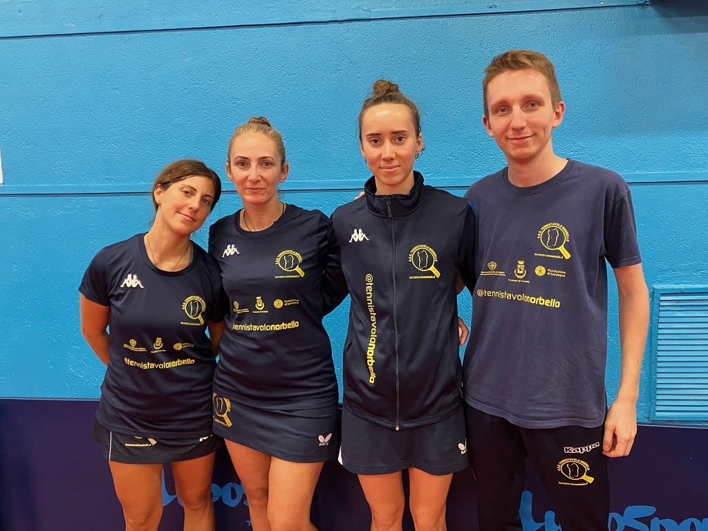 Di tutt’altro impatto l’esordio stagionale del Quattro Mori nel girone C, di scena a Carrara. Una strepitosa Wei Jian, autrice di un 4 su 4 trascina le sue compagne Rossana Ferciug e Madalina Pauliuc verso il pari sul Tennistavolo Senigallia e il successivo trionfo con l’Athletic Club. Tre invece sono le squadre protagoniste nel girone D. A punteggio pieno chiudono il ritrovo di Molfetta, Muravera TT e Tennistavolo Sassari. Il team sarrabese concede un solo punto sia al Tennistavolo Molfetta, sia al Tennistavolo Norbello Giallo. Tre vittorie personali a testa per Mihaela Encea e Giulia Cavalli, uno a testa per Francesca Seu e Margherita Cerritelli. Sulla sponda turritana dà segnali di buona forma la nigeriana Fatimo Bello, che completa l’esperienza molfettese al 100%. Bene anche Lisa Bressan con tre su quattro. Un punto per la sarda doc Laura Alba Pinna. Ausonia Enna e Molfetta le compagini trafitte.