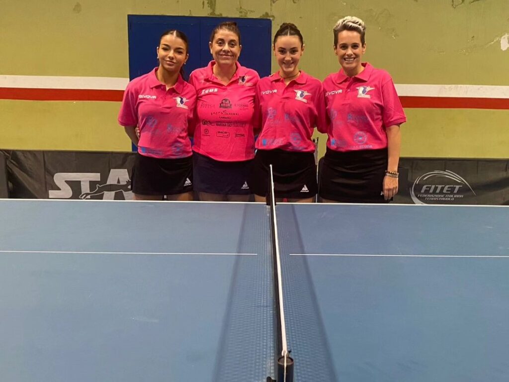 Nel girone H la formazione del presidente Luciano Saiu, impegnata a Roma, sconfigge nell’ordine Tennistavolo Sassari e Eureka Roma con i contributi di Nathalia Riabchenko Bianca Bracco, Nicoletta Criscione, Martina Tirrito e Aurora Piras.