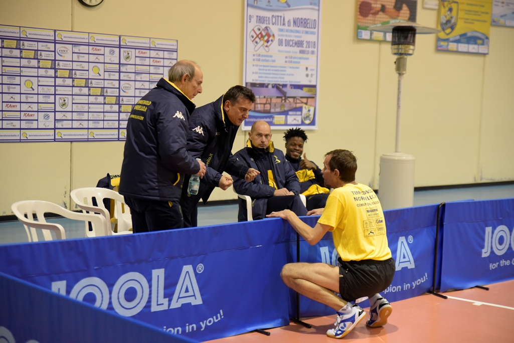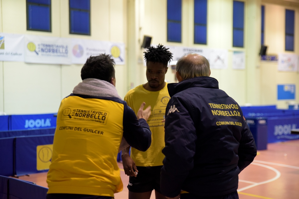 Franco Esposito (Tecnico Tennistavolo Norbello): “Il risultato è sempre stato in discussione con partite molto tirate. Sulla vittoria di Omotayo, sotto 2-0 con Piciulin, non ci avrei scommesso grosse cifre. Si è risollevato grazie ai nostri consigli e poi si è reso conto che doveva fare il suo gioco, prevalentemente d’attacco. Restare sulla difensiva, passivamente, a bloccare, non è il suo forte. Mi sono ritrovato con quattro ragazzi veramente eccezionali, li ho conosciuti qualche giorno fa (a parte Maxim) e ho riscontrato subito un grande affiatamento perché si sono rivelati da subito disponibili e motivati, accettando serenamente le mie decisioni. Dopo questa vittoria le possibilità di salvezza accrescono. Giocare in casa ci sta portando bene, speriamo di continuare così, sono fiducioso per il proseguo”.