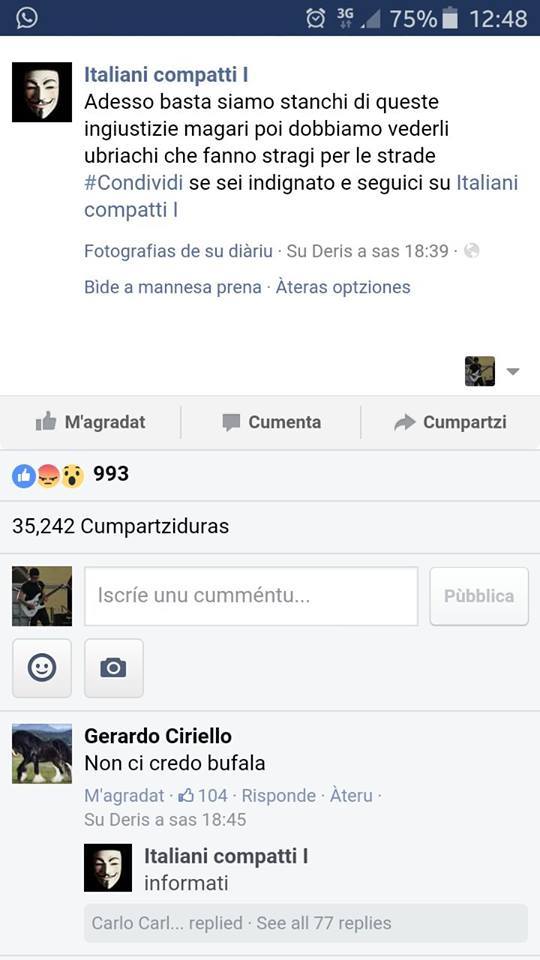 Gianluca Cotza da tempo combatte dalla sua pagina Facebook le bufale, soprattutto quelle razziali; ha quindi voluto fare un esperimento e ha messo sulla sua bacheca questo post: