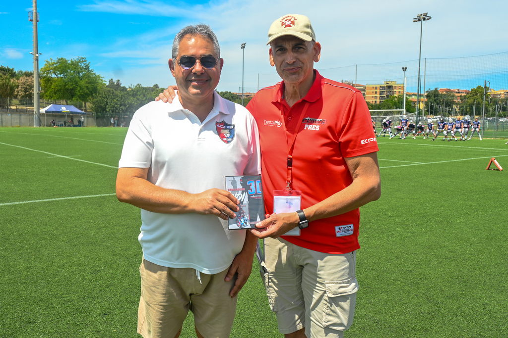 a-dx-il-presidente-Emanuele-Garzia-consegna-il-DVD-NOI-agli-Achei-Foto-Battista-Battino Published 04/06/2024 at 1024 × 683 in Battuti gli Achei, si va a Roma per la semifinale di Conference.