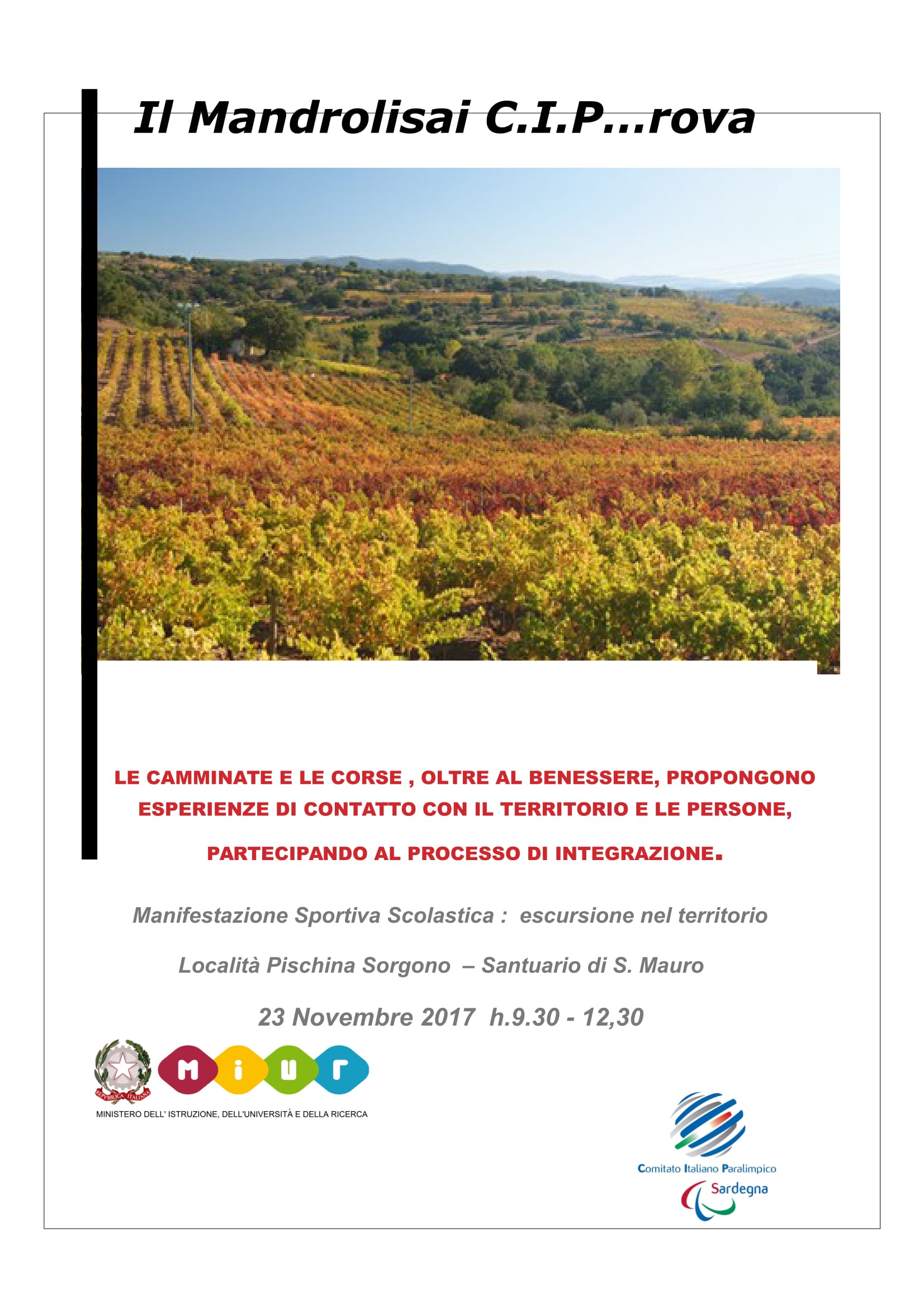 Mauro Marras è componente del Gruppo di supporto e sostegno alle attività per il benessere psico fisico nelle scuole di ogni ordine e grado della Sardegna; ma ne è anche il referente della Provincia di Nuoro. Crede nell’opera di sensibilizzazione nei confronti degli adolescenti “perché investire nella gioventù e nel sistema scolastico è fondamentale”. Ha accolto con grande entusiasmo l’iniziativa del Mandrolisai e ringrazia sentitamente il Cip per il sostegno: “Il suo intervento è stato indispensabile per dare gambe a questa progettualità – continua Marras – che si è concretata lo scorso anno con la prima passeggiata tra i vigneti e quella sul Gennargentu; diversamente non si sarebbero potute organizzare”.