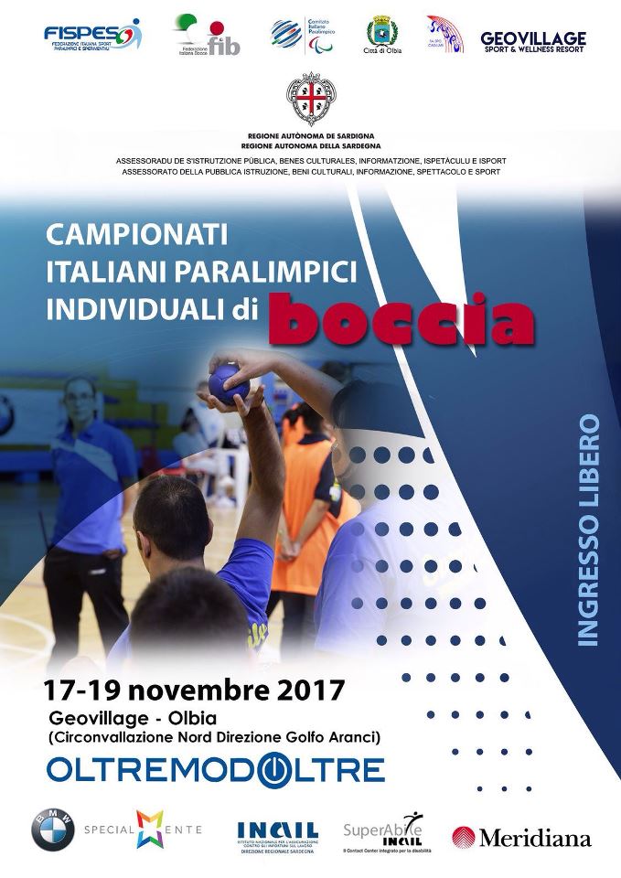 Fare in modo che anche nell’isola la disciplina paralimpica della Boccia possa estendersi verso tutti e quattro i punti cardinali. Da venerdì 17 a domenica 19 novembre 2017 l’ago magnetico della bussola sarà orientato a nord est, e più esattamente in direzione Geovillage di Olbia i cui impianti sono allestiti ad hoc per la seconda edizione dei Campionati Italiani Paralimpici. Questo giovane sport è in procinto di passare sotto l’ala protettiva della Federazione Italiana Bocce (F.I.B.) dopo la breve parentesi gestita dalla FISPES (Federazione Italiana Sport Paralimpici e Sperimentali) che per la manifestazione olbiese ha affidato gli sforzi organizzativi alla società Sardegna Sport (Sa.Spo) di Cagliari. L’evento è anche sostenuto dal CIP sardo presieduto da Paolo Poddighe.