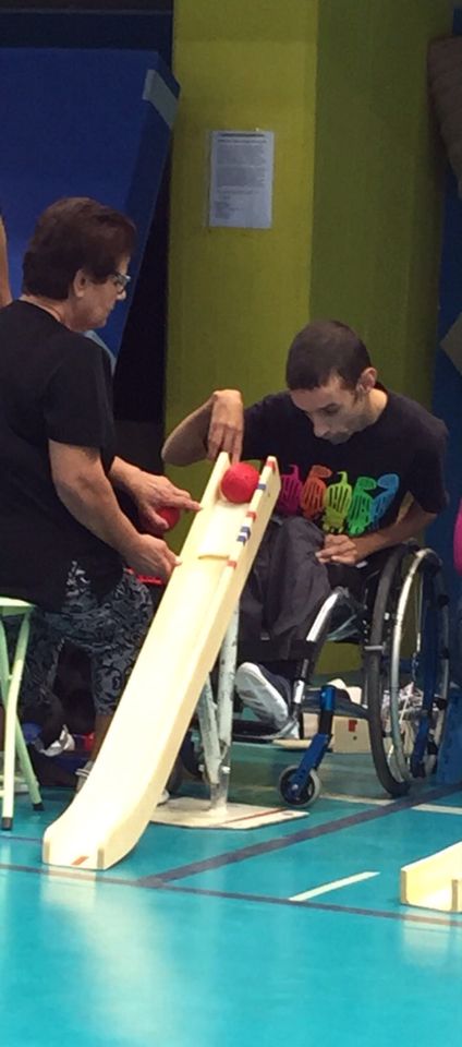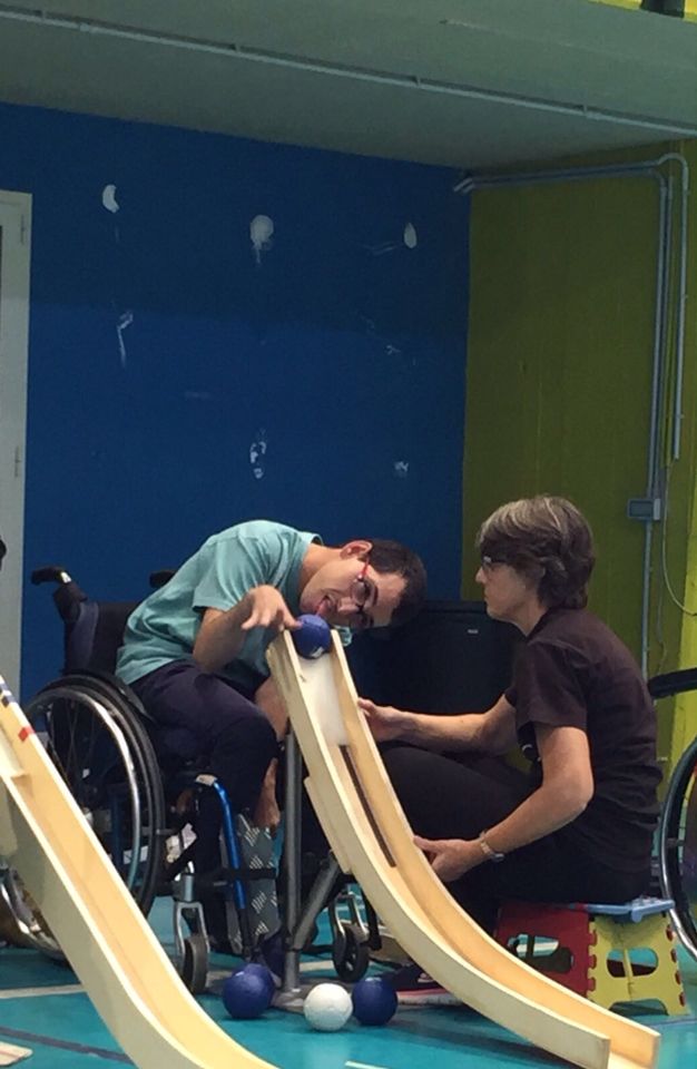 Nella categoria BC1 i giocatori riescono a lanciare dopo che l’assistente, posizionato di spalle, gli aiuta a sistemare la carrozzina e a passare la palla.