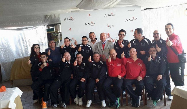 La Polisportiva Olimpia Onlus di Cagliari, del Sulcis e del Sarrabus con I Presidenti Carlo Mascia e Severino Urrai presenti alla conferenza stampa di presentazione della 1°Coppa Italia di Calcio a 5 per disabili mentali.