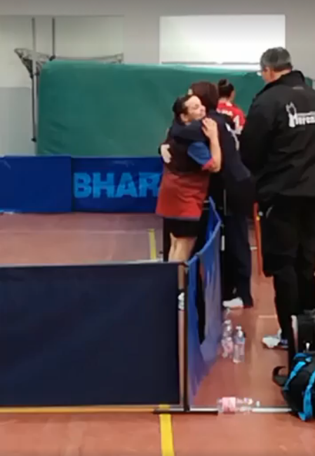 Siamo l’unica squadra a cui ha ceduto un punto e se non fosse stato per me che ho perso con Carassia al quinto set, si sarebbe potuto azzardare anche qualcosa in più. Primissima partita gioco io proprio con Claudia: devo ammettere che nella carta lei è nettamente superiore, ma con il mio gioco atipico, non si sa davvero mai ed ecco che sono riuscita ad impensierire la n. 23 d’Italia. La sfida mi ha segnato un po’ perché vincevo 10-8 al quinto set e ho sbagliato due palle semplici per poi perdere 12-10. Se avessi prevalso sarebbe davvero stata una bella soddisfazione: arrivare a un punteggio del genere con una giocatrice di questo livello è già una vittoria. Il primo punto della nostra squadra lo realizza Larissa su Turrini in una partita lunghissima in cui si doveva avere tantissima pazienza a rimettere la palla in campo dopo che l’avversaria tagliava. Due punti li realizza Marina su Semenza e Turrini e uno a testa lo perdiamo io su Semenza e Larissa su Carassia. Finendo così la partita sul pareggio. Il livello di questa A2 è davvero alto e vedere che comunque me la sono giocata con atlete di un certo livello mi fa capire che ci sono e sto lavorando bene. Quello che secondo me è mancato in questo concentramento è il dritto, ne ho sbagliati tantissimi: se avessi tirato un po’ di più con Carassia avrei vinto, ma ora tutto è archiviato e si pensa ai prossimi impegni che sono la D2 ma soprattutto la A2 che si gioca già il prossimo mese. Inoltre vorrei spendere due parole per la mia squadra: faccio i complimenti alle mie due compagne che sono state davvero brave. Le ringrazio per tutto il supporto”.