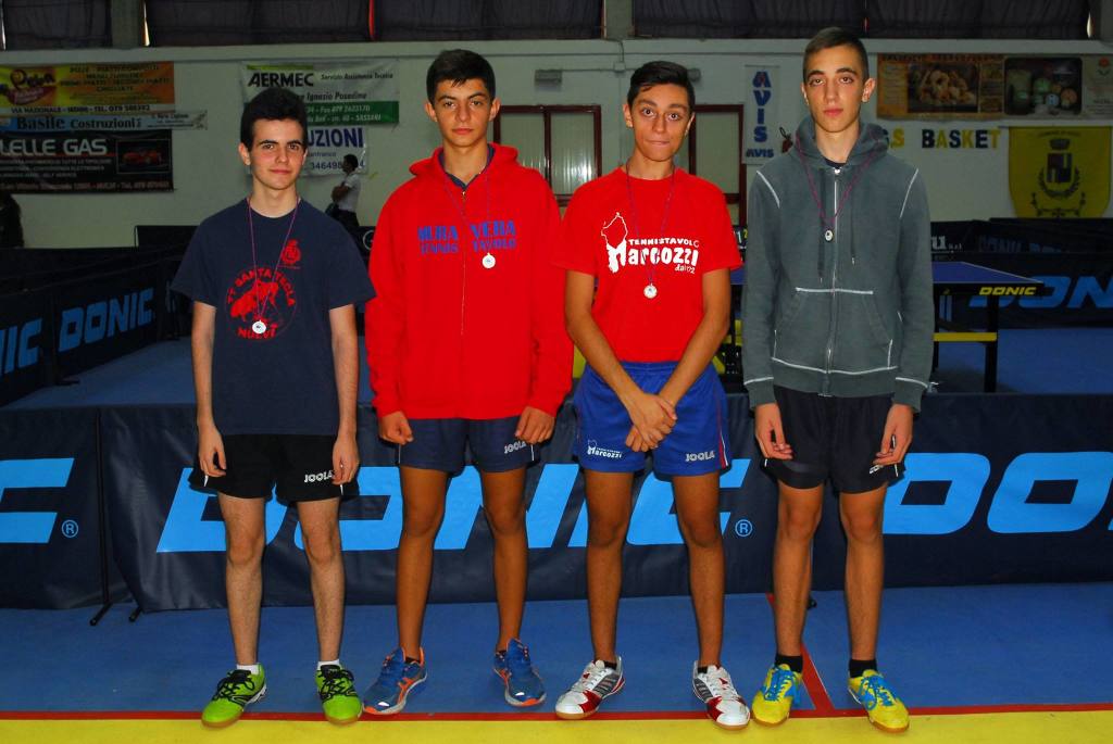 Domenica mattina 34 atleti provenienti da cinque società isolane hanno dato vita al secondo torneo predeterminato giovanile. La società Muravera TT dell’allenatrice Francesca Saiu ritorna a casa con il bottino più corposo costituito da quattro successi. A partire dai giovanissimi maschili e femminili con Marco Nieddu e Giulia Zucca, per poi continuare con Sara Congiu nei ragazzi femminili e infine Stefano Macis negli juniores maschili. La Marcozzi vince con Johnny Oyebode nei ragazzi maschili e Federico Rocca negli allievi maschili (unico partecipante). Vittorie anche per Letizia Pili del Quattro Mori Cagliari (che fa suo anche il torneo regionale riservato ai quarta femminili) ed Elena Ricciu della Libertas Ping Pong Monterosello Sassari (unica partecipante) negli juniores femminili.