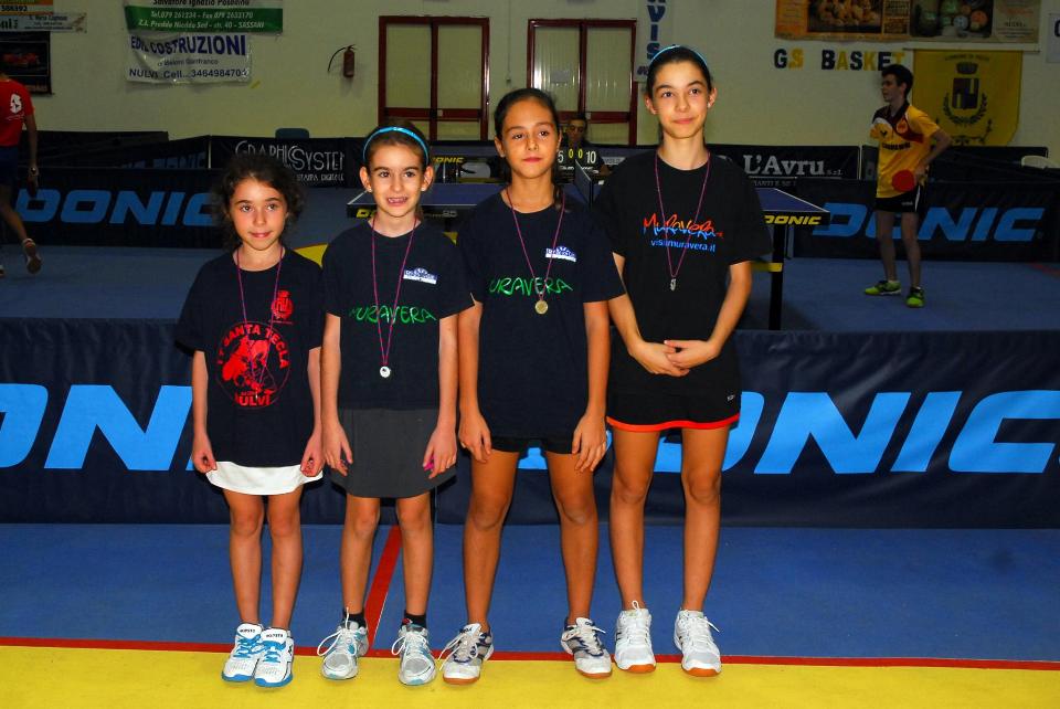 Monologo del Muravera TT anche tra le giovanissime. Giulia Zucca si impone a punteggio pieno nel girone a otto precedendo le altre due “muraverinas” Serena Anedda e Rita Francesca Franzo’. Quarto posto per la padrona di casa Rossana Ferciug, unica assieme ad Anedda a strappare un set alla vincitrice.