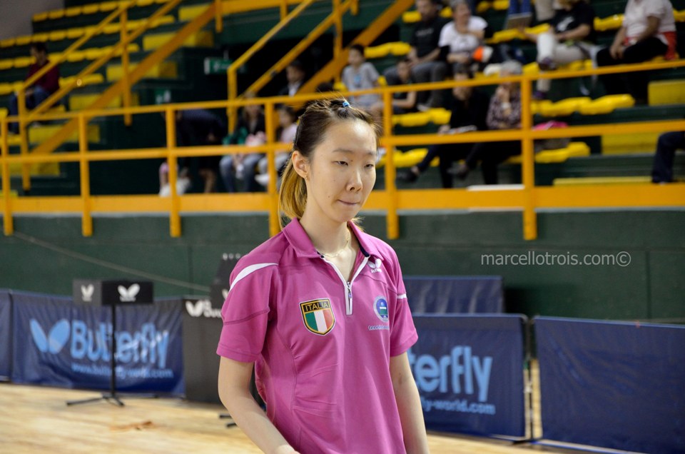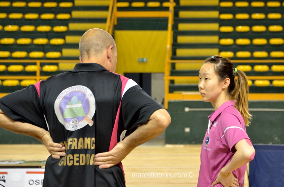 Non è stato facile ottenere l’accesso. Le due contendenti hanno dato vita ad una gara molto tirata con le padrone di casa che hanno rischiato di compromettere la difesa del tricolore. Sin dalla prima gara quando la cino – sarrabese Wei Jian, ancora scossa per la recente perdita del padre, non è riuscita ad entrare in partita e ha dovuto soccombere nettamente contro la sardissima di Assemini Maria Rita Pilloni, avversaria con cui in passato non aveva mai avuto grossi problemi. L’incontro clou è quello seguente tra la scudettata Tian Jing e la numero uno della Polisportiva Bagnolese Yuan Yuan che in questa stagione per ben due volte era riuscita a sconfiggerla. In vantaggio per 2 a 1, la zeusina parte male nella quarta frazione subendo un pesantissimo 0 – 7. Ma come già successo in altre occasioni riesce a recuperare sino allo 8 – 8. Rischia ancora con due set ball da annullare e poi con grande tenacia si aggiudica il match che significa pareggio. A questo punto la fisionomia dell’incontro cambia radicalmente, grazie a Su Yaxin che batte Lisa Ridolfi.