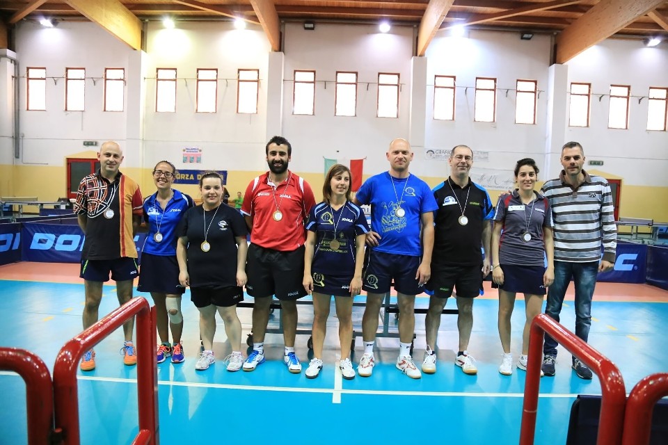 I migliori specialisti isolani non hanno tradito le attese e si sono presentati al Palazzetto dello Sport di Decimomannu per onorare al meglio i campionati sardi assoluti. Assegnati in tutto cinque titoli, tra un totale di trentacinque partecipanti. La società che ha raccolto un maggior numero di medaglie è stata la Marcozzi che ha ottenuto tre successi con Carlo Rossi (Singolo Maschile), la coppia Luigi Rocca /Johnny Oyebode (Doppio Maschile Assoluto) e in comproprietà con il Quattro Mori Cagliari il primato nel doppio misto grazie a Stefano Curcio e Silvia Deligia. La società al femminile di via Crespellani condivide l’oro con il Tennistavolo Norbello nel doppio femminile assoluto grazie al duo Silvia Deligia/Eleonora Trudu. Sale sul podio più alto per una volta anche la Muraverese con Aurora Piras che diventa campionessa sarda assoluta nel singolo femminile. Oltre alle già menzionate società, raccolgono medaglie meno pregiate anche l’Azzurra Cagliari, il Tennistavolo Guspini, la Libertas Sassari, la Saetta Quartu e il Santa Tecla Nulvi.