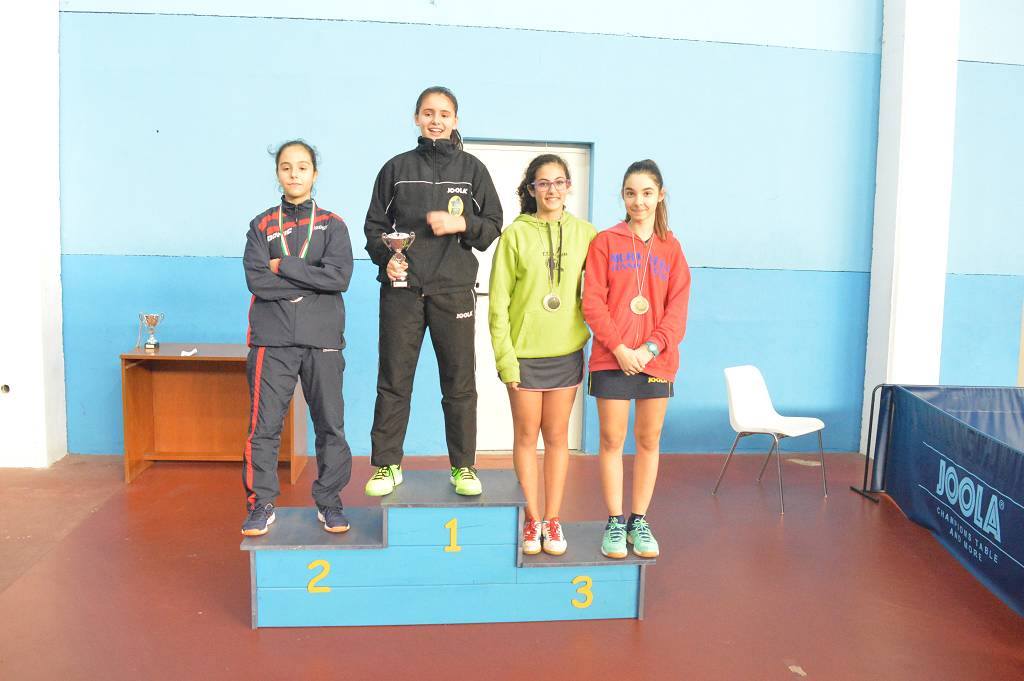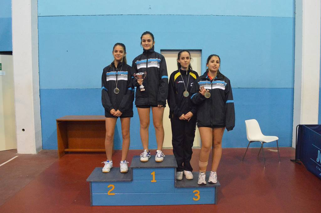 Girone unico per cinque partecipanti. Rossana Ferciug dall’Anglona sbaraglia tutte le avversarie concedendo un solo set alla sassarese Martina Bonomo (Libertas Ping Pong Monterosello), che si piazza al secondo posto, precedendo la sua compagna di scuderia Francesca Ganau. Più dietro ancora un’altra turritana, Chiara Scudino e Alessandra Stori (MuraveraTT).
