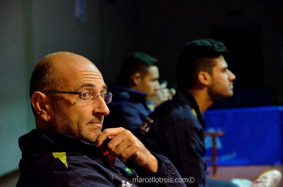 Poi incontriamo i vincitori dello scorso campionato e favoriti per il bis in questa stagione: il TT. Monserrato. Noi schieriamo nei singoli Mauro Mereu e Michele Giuseppe Bandinu e nel doppio Antonello Ledda e Franco Sanna. Loro il cuoco naif Giuseppe Lepori e Gianluca De Vita sia per i singoli, sia per il doppio. Iniziano De Vita opposto a Bandinu, sia questo incontro, sia l’intera partita hanno poca storia e poche incertezze. I parziali sono a favore di De Vita 11-7, 11-6 e 11-2 per il 3-0 finale. Il secondo incontro vede di fronte Giuseppe Lepori e Mauro Mereu, storia ancora più breve con un 3-0 per Lepori con i parziali di 11-4,11-5 e 11-6. Si chiude con il doppio De Vita-Lepori contro Ledda-Sanna: ancora meno incerto dei due singoli precedenti. Si inizia con un doppio 11-3 e si conclude con un 11-6, un 3 a 0 che rispecchia l’intero incontro finito 3 a 0 per Monserrato con un triplo 3-0! Speriamo in una sterzata positiva in toto nel 2° concentramento di Oristano. Colgo l’occasione x porgere a tutto il movimento pongistico sardo un augurio di buone feste, di un sereno Natale e di un 2016 ricco di soddisfazioni sportive e non”.