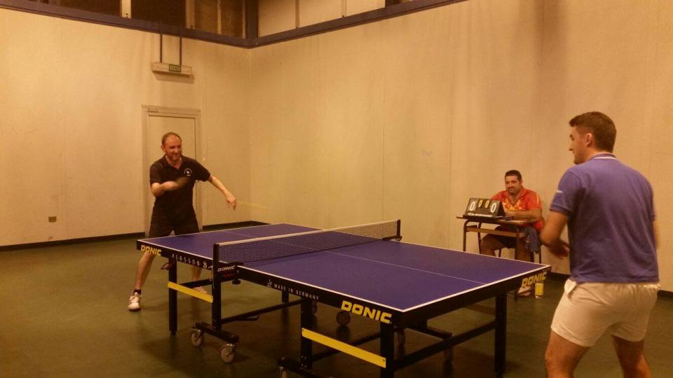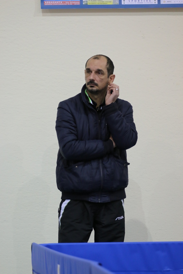 “In quel di Lanusei schieriamo una formazione quasi obbligata – narra Gianpiero Occhioni – dettata dal febbricitante Motzo e dal lieve infortunio del nostro mitico presidente Christian Mulas, comunque presente in qualità di accompagnatore, dirigente, riserva, tifoso, dispensatore di consigli ad ampia gamma di applicabilità. Marco Cassitta segna il primo punto della partita ai danni di Fabrizio Licciardi: incontro che speravo venisse fuori dalla lotteria delle formazioni (mi ritaglio due righe qui per dire che la Mini-Swaythling è all’altezza della considerazione di Fantozzi sulla Corazzata Potemkin) in quanto io stesso ero fermamente convinto delle possibilità del mio compagno di squadra. Punto che considero (attenzione spoiler) decisivo in relazione alla nostra vittoria di squadra. Seconda sfida tra Carlo Piroddi ed Emilio Albero. Carlo dopo aver perso il primo set davvero male, in cui sembra essere solo un mediocre giocatore, ritrova subito concentrazione e determinazione tattica degna di nota e vince i tre set seguenti, ahinoi, brillantemente. Successivamente segno io il 2 a 1 contro Maurizio Cuboni a cui cedo comunque il mio primo set in passivo della stagione. Ma è subito pareggio, 2 a 2: Fabrizio supera Emilio in quattro set, incontro anche qui perso da noi piuttosto a livello tattico che per inferiorità tecnica. Marco ci riporta in vantaggio grazie ad un’altra ottima prestazione contro Maurizio. Infine spetta a me il punto della vittoria contro Carlo in una partita insidiosa anche se si conclude in soli tre set. Offro sicuramente un gioco brutto ma efficace, dettato dalla consapevolezza che questi potrebbero rivelarsi punti pesanti per la lotta al vertice della D1 girone B”.