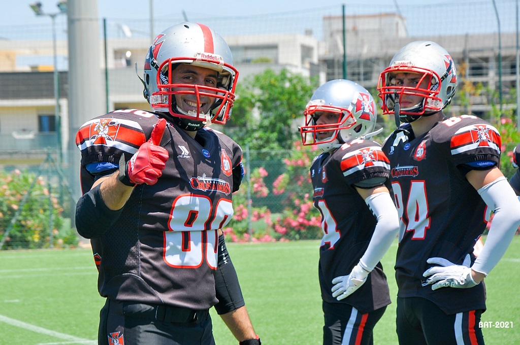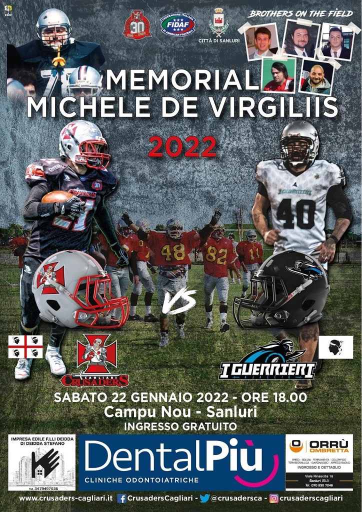 Alla preparazione dell’appuntamento ci ha pensato il forte ricevitore veterano ex Blue Team Matia Pisu (vedere intervista in basso) che si è mosso con il prezioso ausilio dei suoi compagni di squadra. A coordinare tutto il presidente Emanuele Garzia che tiene moltissimo a questa gara piena di significati: “I Crusaders sono rimasti legatissimi ai De Virgiliis – rimarca Garzia – al punto che per me rappresentano una seconda famiglia. A mamma Eleonora voglio un bene dell’anima come del resto al fratello Guido e alla sorella Alessandra. Nel ricordo di Michelone, Paolo, Massimiliano, Eros e Paolo, faremo la nostra prima apparizione stagionale alla quale i ragazzi si stanno preparando già da tempo. Pur essendo un’amichevole rappresenterà un validissimo test per capire qual è il nostro livello di preparazione. Ringrazio tutti gli atleti per i sacrifici che stanno sostenendo: andando tre volte alla settimana ad allenarsi tolgono tempo alla famiglia e a al lavoro. E c’è chi pure deve intraprendere delle trasferte lunghissime per unirsi a noi come l’autotrasportatore Francesco Giuliano che fa continuamente la spola tra Penisola Iberica e Penisola Balcanica e trova pure un ritaglio da dedicare alla squadra”.