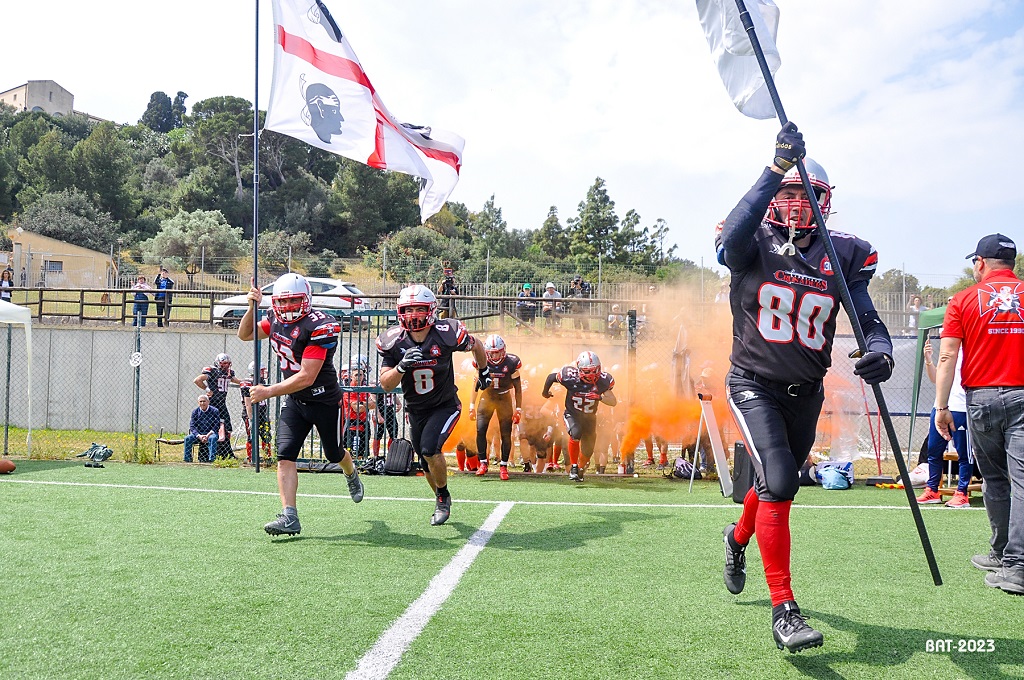Federico Pili (20, running back), Riccardo Pili (22, running back), Francesco Loche (23, running back), Mattia Solinas (24, running back), Davide Cappai (26, running back), Davide Anedda (40, runningback)