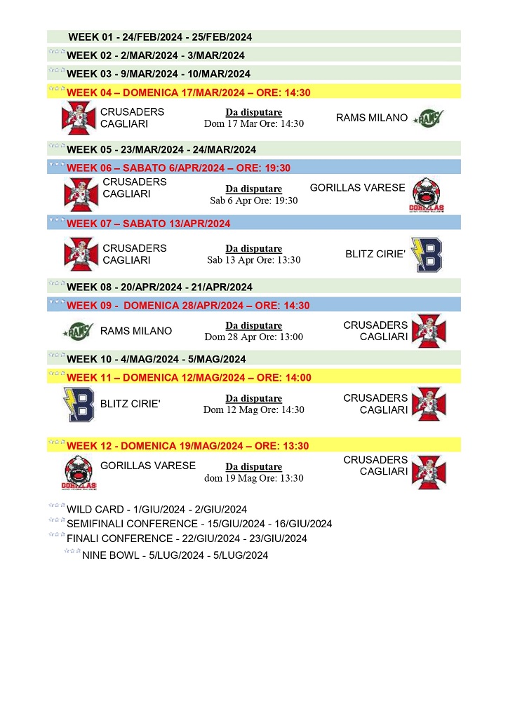 17 marzo 2024Crusaders Cagliari – Rams Milanoh. 14:30