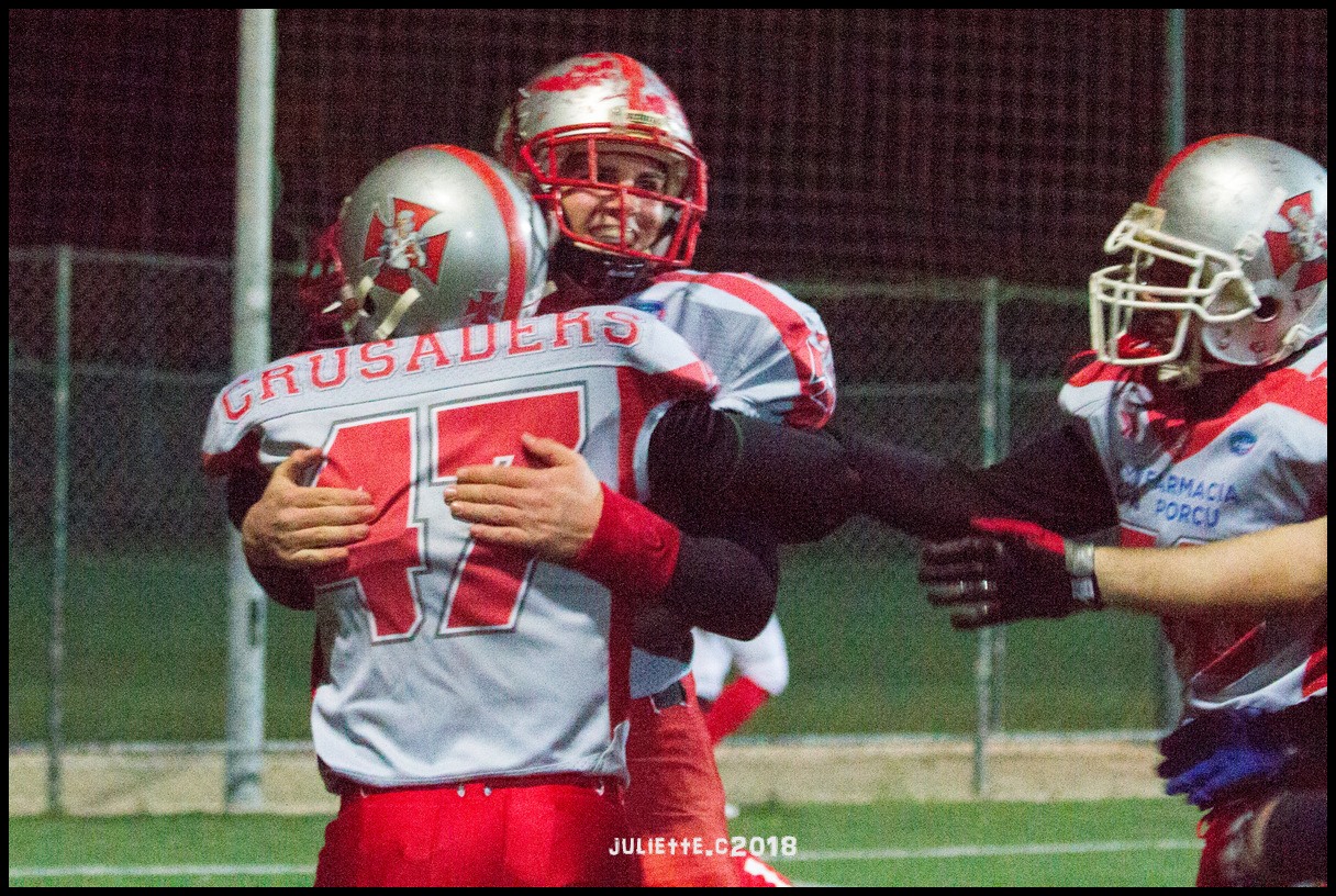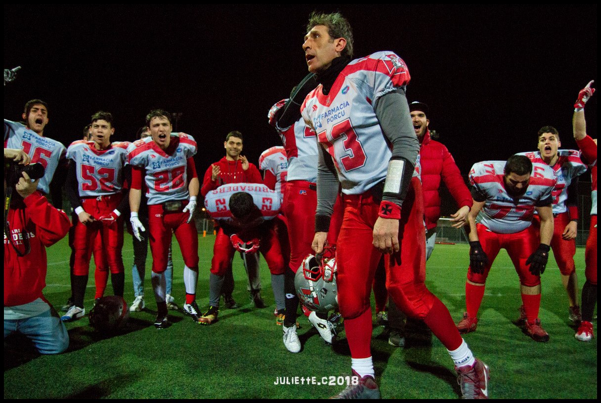 L’ultimo pensiero è del linebacker Alessandro Ortu, faro della difesa: “La reputo una soddisfazione personale, della squadra, di tutti coloro che ci supportano. É davvero un orgoglio giocare con i miei compagni di squadra. Questo è l’inizio, lo definirei un trampolino verso nuove soddisfazioni. Il merito di questa vittoria è dell’intera squadra, c’è stato un grande affiatamento tra di noi. Rispetto all’anno scorso credo che ci sia maggiore motivazione e più assiduità negli allenamenti, svolti con la convinzione di dare il massimo per ottenere qualcosa di insolito. A fine gara tutti eravamo contenti e con un bel sorriso stampato in faccia perché ce l’avevamo fatta non solo mentalmente ma soprattutto fisicamente. La difesa ha dato l’opportunità all’attacco di giocarsi un bellissimo drive che mi ha generato tanta gioia. Ma il merito è anche dell’attacco. Il fatto che ci siamo sbloccati può essere un’arma a doppio taglio perché da un lato ci stiamo costruendo un nome. Dall’altro tutte le avversarie si impegneranno di più contro di noi e questo potrebbe essere un fattore per farci migliorare ulteriormente”.