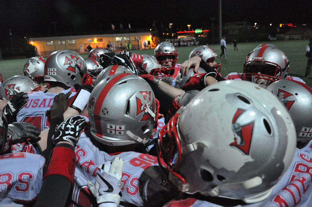 Mentre si smantella il campo per renderlo idoneo al calcio, i protagonisti dell’atteso evento continuano a confabulare ignari del tempo che scorre. L’head coach Jarvis McGarrah ammette che errori se ne sono fatti tanti, ma vincere nettamente è un grande toccasana: “Siamo rimasti concentrati sino alla fine – ammette – questo perché durante gli allenamenti abbiamo lavorato sulle piccole cose. Credo che le gare d’esordio siano sempre da considerarsi esperienze utili all’apprendimento”. Nella sua disamina si capisce che i suoi abbiano fatto meglio degli avversari: “Ce la siamo meritata perché ci siamo allenati duramente. Quella dei Gorillas è una squadra difficile, per riuscire a batterla dovevamo essere pronti”. Dora in poi i Crusaders non saranno più visti come compagine cuscinetto: “Combatteremo in ogni partita, colpiremo duramente e giocheremo con orgoglio”. Un pensierino lo riserva anche al pubblico: “Sono profondamente colpito per il supporto dei fan. Speriamo di vederne ancor più nella prossima partita in casa. Amo i Crusaders, amo Cagliari e la Sardegna che continueremo a rappresentare con orgoglio e dignità”.