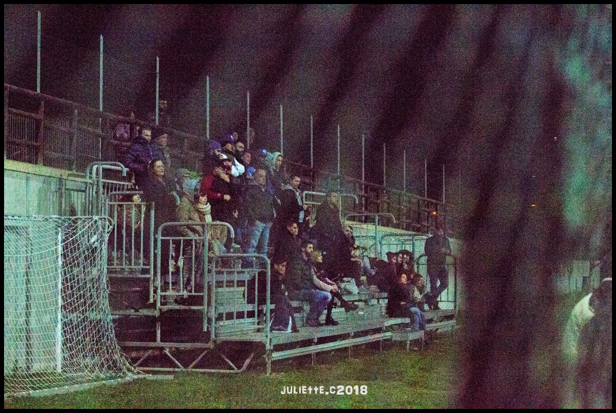 Già dagli esercizi pre partita eseguiti con solenne fermezza ma con nessun segno di inquietudine si arguisce che il rettangolo verde di Monte Claro emana nuovamente fluidi benigni. Fa uno strano effetto vedere gli spettatori allineati sulla stesse gradinate, vicini e festosi, sebbene l’umidità serale assale anche coloro che si sono imbacuccati da cima a fondo.