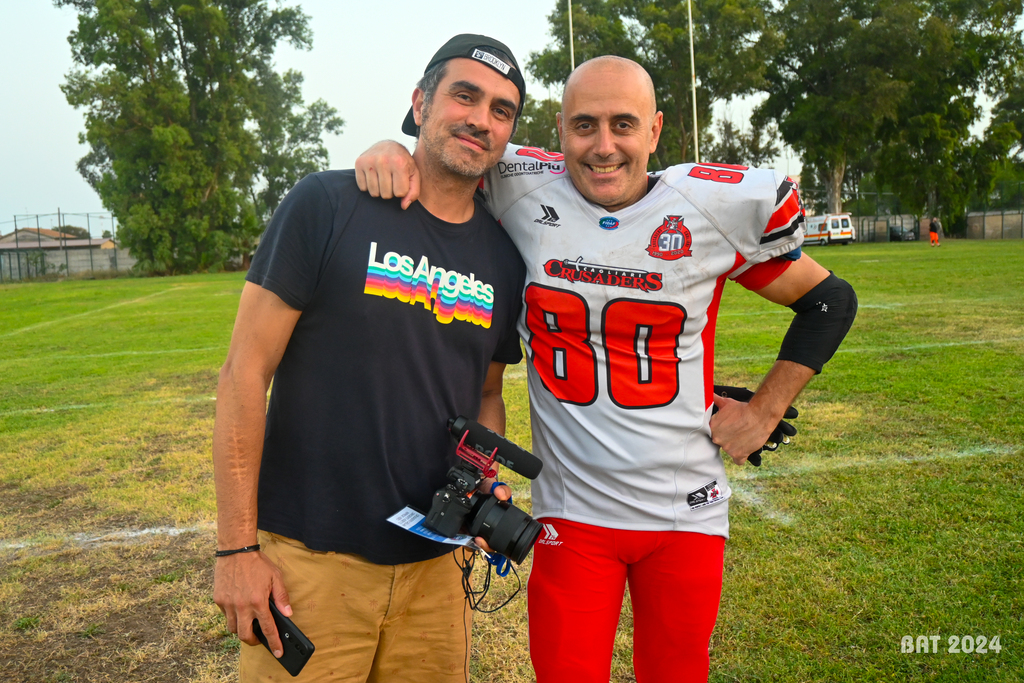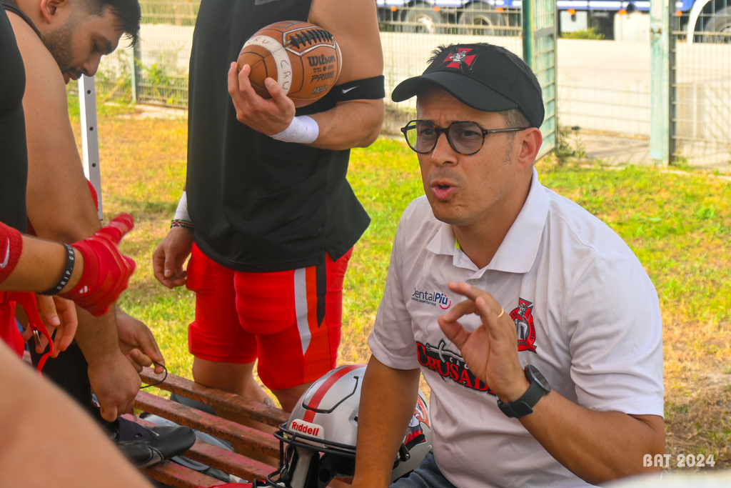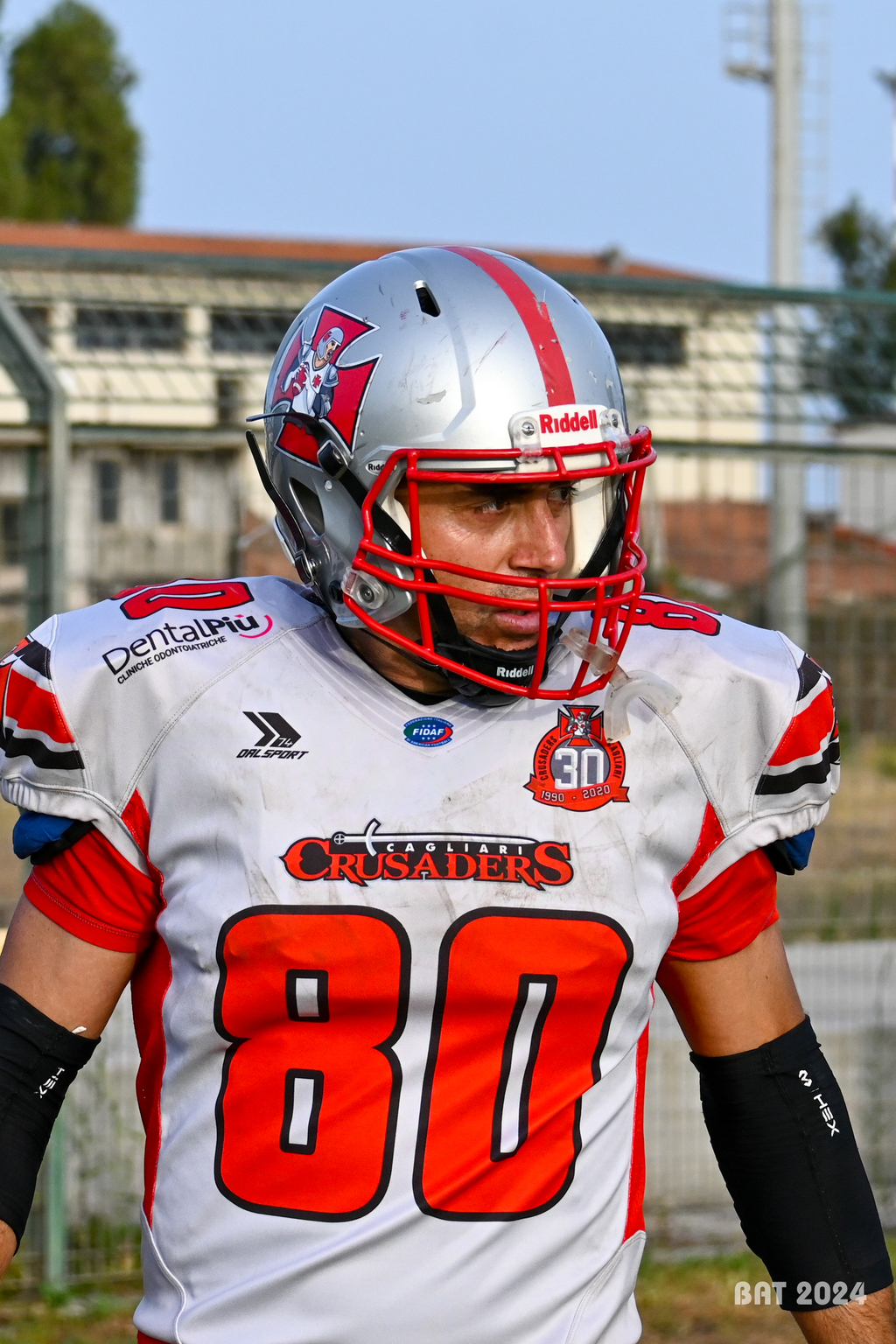 Ha gli occhi puntati addosso e lui non fa nulla per nascondere la commozione. Neppure quando l’head coach di casa Gianmarco Pecoraro se lo abbraccia lungamente perché sa benissimo quello che Matia Pisu sta vivendo in quegli istanti. Dopo quattro finali di conference vinte, il ferroviere cagliaritano può aggiungere con grande orgoglio anche la sconfitta della quinta, lasciando un collettivo in ottimo stato di salute che ha saputo ingranare anche grazie ai suoi suggerimenti non solo tecnici ma soprattutto umani perché come dice lui, certi legami vanno aldilà dello sport. Da super uomo, per otto anni è riuscito a gestire due campionati contemporaneamente con tutti i rischi e le fatiche che sia il basket, sia il football americano riescono a scatenare. Rivela che “il Football è uno sport che tutti possono provare ma è anche vero che non è per tutti. E non parlo dell’aspetto fisico ma di quello mentale perché devi essere realmente pronto a sacrificare tanto e a non pensare alla fatica e agli infortuni che esso può provocare”.