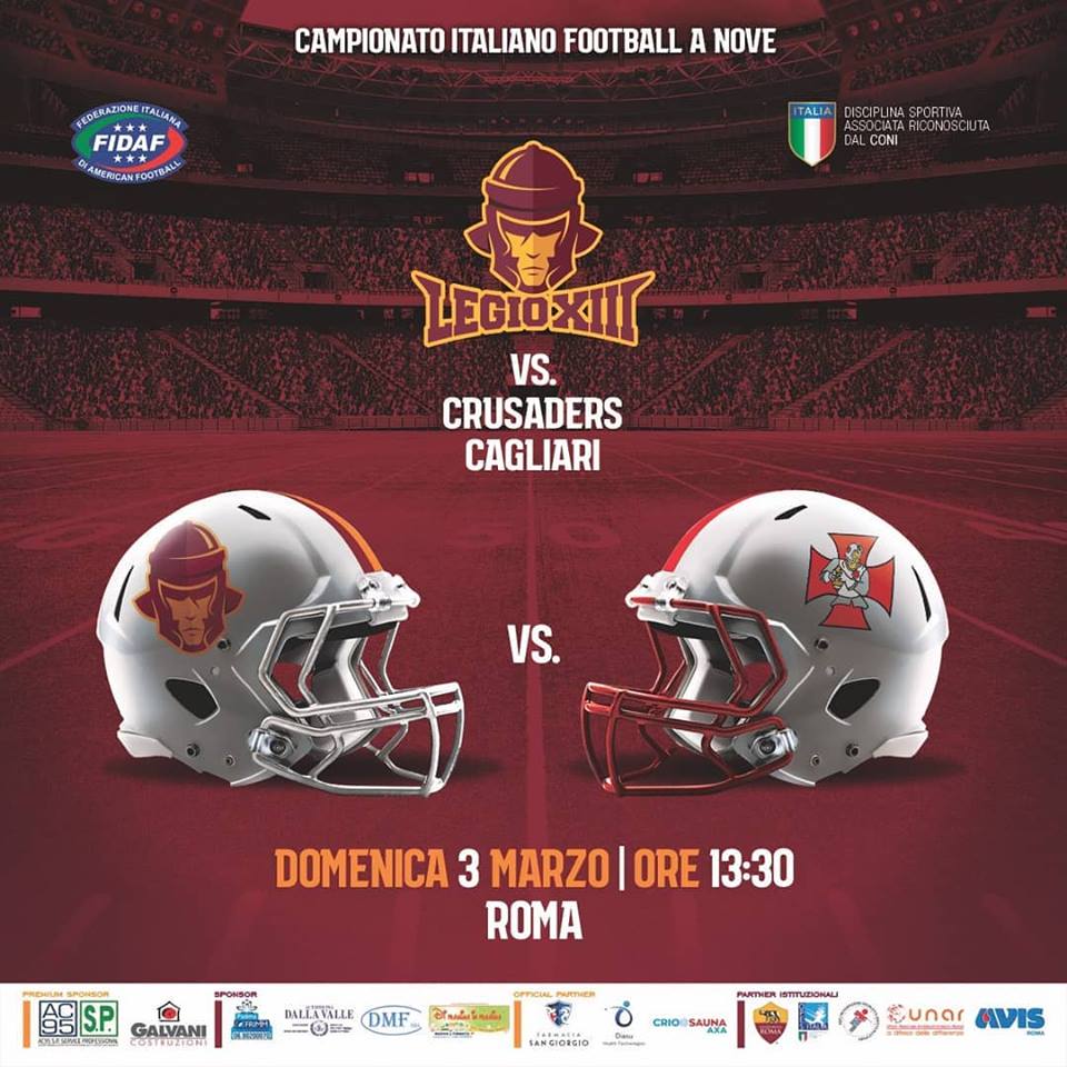 | 14/04/2019 | Crusaders Cagliari – Legio XIII Roma | h. 13:30 |