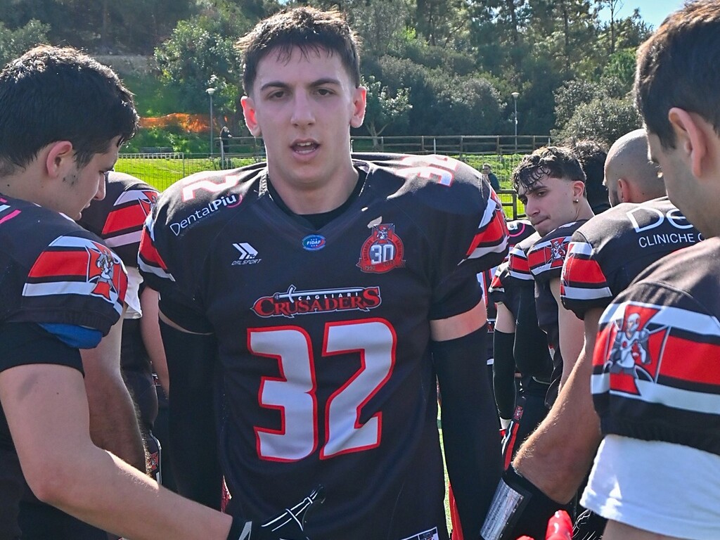 Federico Pili (20, running back), Riccardo Pili (22, running back), Francesco Loche (23, running back), Mattia Solinas (24, running back), Davide Cappai (26, running back), Davide Anedda (40, runningback)